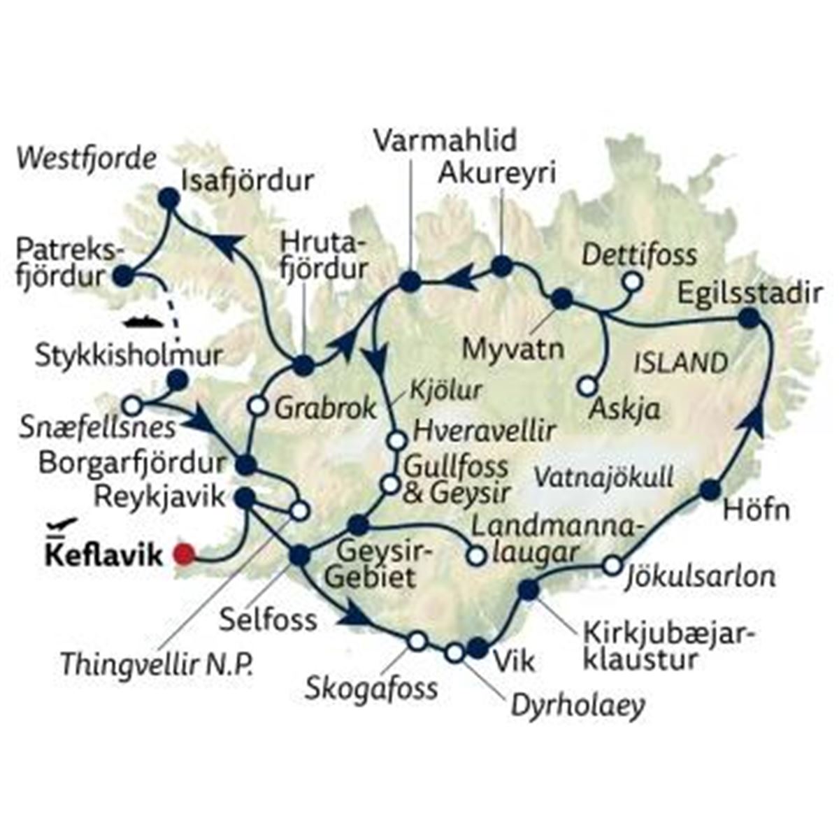 Die Reise beginnt mit dem Nationalpark Thingvellir, in dem das isländische Parlament Althing 930 n.Chr. gegründet wurde. Über das Kaldidalur Hochland geht es zu den Wasserfällen Barnafoss und Hraunfossar. Anschließend besuchen Sie Reykholt, einst Wohnsitz des Sagadichters Snorri Sturluson.