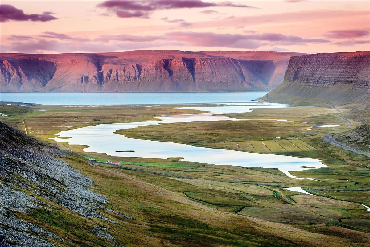 Sie fahren über atemberaubende Gebirgspässe und erkunden die beeindruckende Fjordlandschaft im Nordwesten Islands.