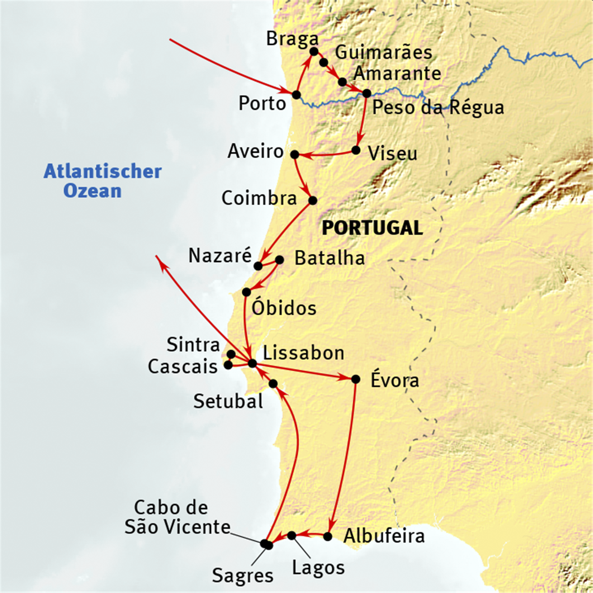 Ganztägige Stadtbesichtigung in Porto, zweitgrößte Stadt Portugals. Kombinierte Rundfahrt mit einem Rundgang sowie Besuch der St.-Franziskus-Kirche, einem gotischen Bauwerk aus dem 17. Jahrhundert. Wir halten im Ribeira-Viertel (UNESCO-Weltkulturerbe) am Flussufer, eines der am besten erhaltenen historischen Stadtgebiete des Landes. Am Nachmittag einstündige Bootsfahrt auf dem Douro, bei der wir interessante Einblicke in die Geschichte der Stadt und ihre berühmten Brücken erhalten. Im Anschluss besuchen wir in Vila Nova de Gaia ein traditionsreiches Portweinhaus und probieren edle Portweine, die unter den typischen roten Dächern reifen. Abendessen in Eigenregie.