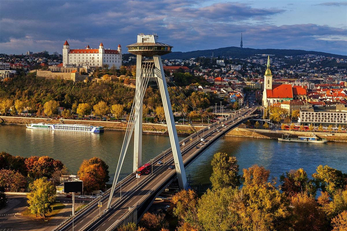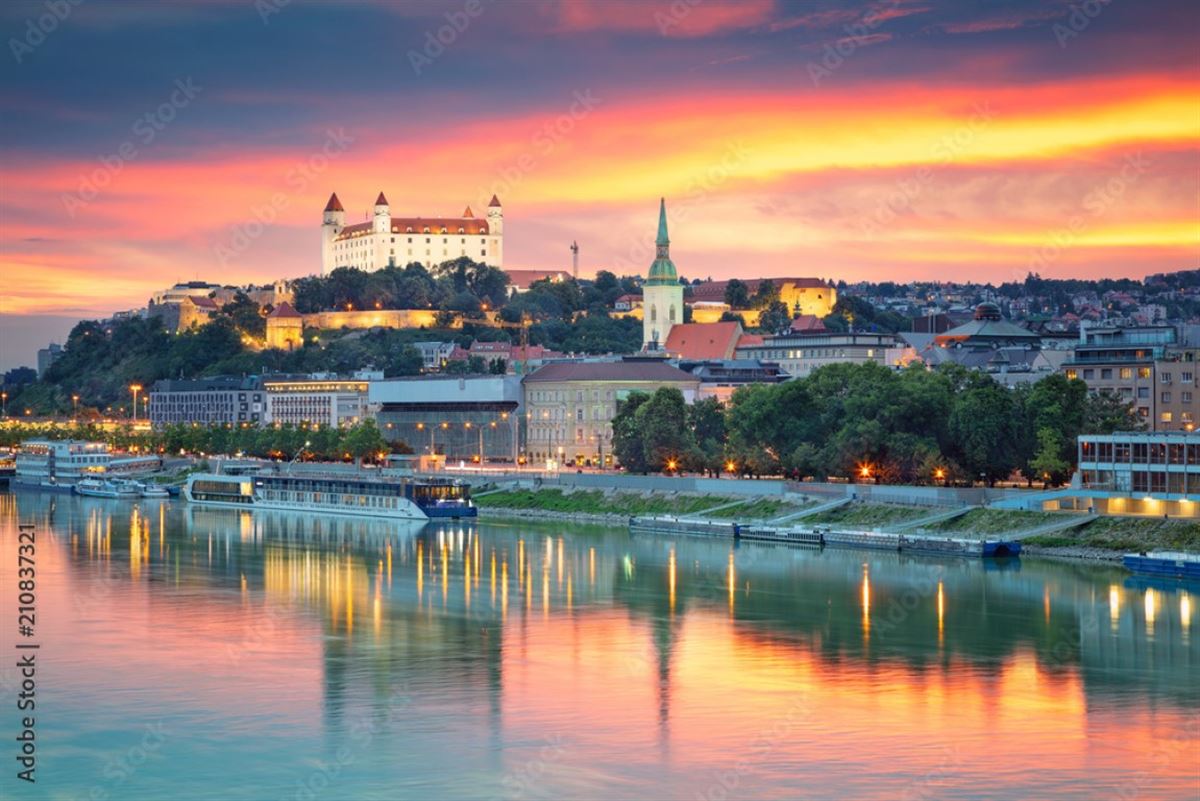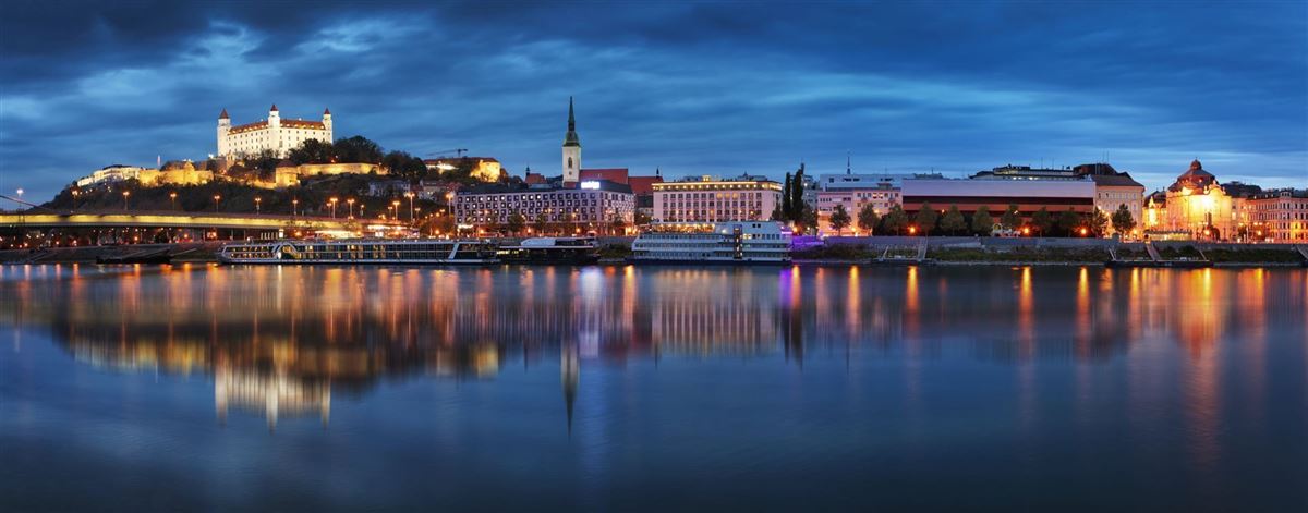 Linienflug nach Wien. Begrüßung durch die Reiseleitung und ca. einstündiger Transfer nach Bratislava. Stadtrundfahrt mit Stopp am mächtigen Burgschloss (von außen), das auf einem Felsen über der Donau thront und als Wahrzeichen der Stadt dient. Kurzer Spaziergang durch den Schlosspark mit tollem Panoramablick über Fluss und Stadt. Dann Altstadtrundgang mit historischen Bürgerhäusern, altem Rathaus, Nationaltheater, Ganymed-Brunnen, Reduta-Gebäude, Michaelertor (13. Jh.) sowie der Jesuitenkirche. Innenbesichtigung des klassizistischen Primatialpalast (18. Jh.), heute Rathaus und der St. Martins-Kathedrale, eines der besten Beispiele der Gotik in der Slowakei. Check-in und Abendessen im Hotel.