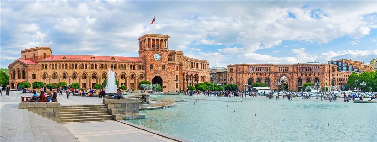 Ankunft in Jerevan frühmorgens. Begrüßung durch die Reiseleitung und Transfer zum Hotel (3 Nächte, inkl. der ersten kurzen Nacht). Wegen der frühen Ankunft und nach ein paar Stunden Schlaf späterer Start am Vormittag zur Stadtrundfahrt in Jerevan: der zentrale Platz der Republik mit seinen markanten Gebäuden aus Tuffstein, die neue Kathedrale "Grigor Lusavoritsch", die zentrale Markthalle und die persische „Blaue Moschee“ (18. Jh.). Unsere Tour endet an der Kaskade, ein Treppenkomplex und Grünanlage mit mehr als 100 Werken internationaler Bildhauer und einem beliebten Aussichtspunkt mit Panoramablick auf die Stadt. Kaffeepause bei einem Musiker, der das armenische Nationalinstrument Duduk aus Aprikosenholz schnitzt und spielt und in dessem schönem Garten wir diesen außergewöhnlichen Klängen lauschen können. Am Abend optional Führung und Verkostung in der berühmten Brandyfabrik "Ararat" (€ 15. p. P.).