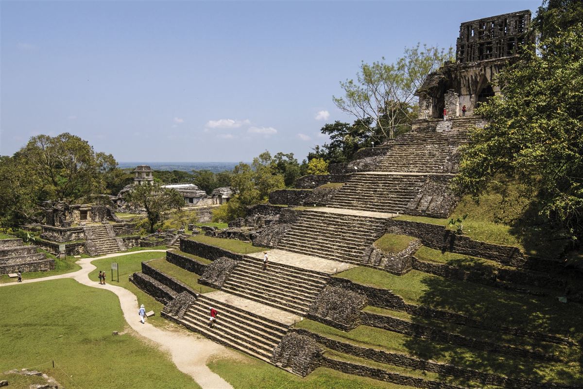 Am Rande des subtropischen Regenwaldes von Chiapas gelegen, erreichen wir die schönste Ruinenstadt Mexikos. Um 300 v. Chr. gegründet, stand Palenque im 7. und 8. Jh. n. Chr. in voller Blüte; alle heute noch zu sehenden Gebäude stammen aus dieser Periode. So zum Beispiel der Tempel der Inschriften mit mehr als 620 Hieroglyphen, die die Geschichte des Königs Pakal erzählen – oder der große Palast, der Sonnentempel und der Nordtempel mit seinen Stucküberresten und kriegerischen Szenen.