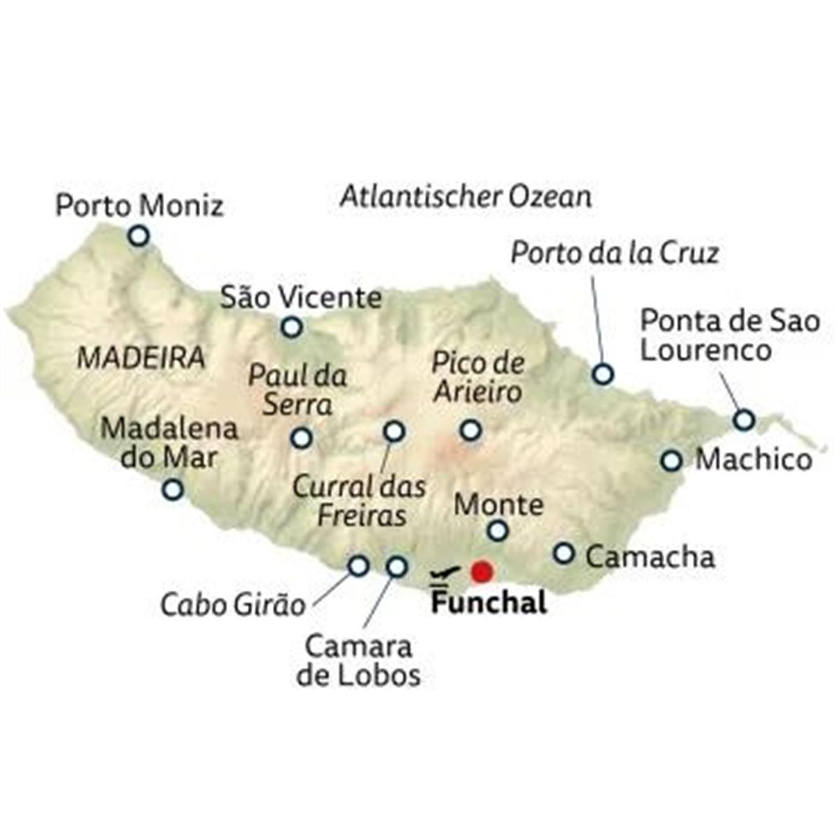 Während der Stadtführung durch die Inselhauptstadt erwartet Sie in der berühmten Markthalle Mercado dos Lavradores ein buntes Treiben. Mit dem Bus geht es hinauf nach Monte, dort besichtigen Sie die Wallfahrtskirche und den tropischen Monte Palace Garten. Anschließend haben Sie die Möglichkeit, die Talfahrt mit den inselbekannten Korbschlitten zurückzulegen. Der Tag wird mit einer Verkostung des berühmten Madeiraweins abgerundet.