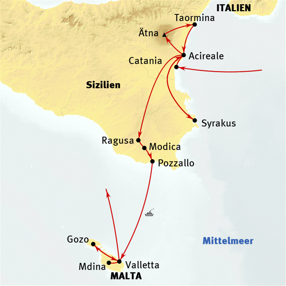 Bevor wir heute Sizilien verlassen, besuchen wir die Städte Ragusa und Modica. Unsere erste Station ist die sizilianische Barockperle Ragusa, die im Val di Noto liegt. Auf einem Rundgang lernen wir die historische Altstadt „Ragusa Ibla“ kennen und sehen unter anderem die Kirche Santa Maria delle Scale, die Piazza Duomo mit dem Dom San Giorgio, den Palazzo La Rocca und die Hybläischen Gärten Giardini Iblei. Anschließend fahren wir weiter nach Modica, einer weiteren Stadt mit bedeutender historischer und aristokratischer Vergangenheit, die auch für ihre köstliche Schokolade berühmt ist. Wir besuchen die Unterstadt und das historische Zentrum Modica Alta, das sich idyllisch auf dem Hügel der Stadt erhebt. Im Anschluss fahren wir zum Hafen von Pozzallo, von wo wir mit der Fähre nach Malta übersetzen (Dauer ca. 1,5 Std.). Nach der Ankunft in Valletta Begrüßung durch den örtlichen Reiseleiter und der Transfer zu unserem Hotel.