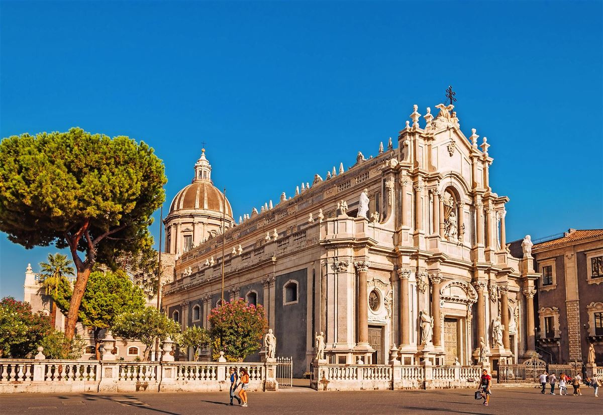 Heute steht die faszinierende Stadt Catania im Mittelpunkt, die auch als „Stadt der Lava“ bekannt ist, da sie größtenteils aus dem Lavagestein des nahegelegenen Vulkans Ätna erbaut wurde. Gemeinsam mit unserem örtlichen Guide schlendern wir die berühmte Via Etnea entlang und bewundern die Überreste des antiken römischen Theaters, den beeindruckenden Dom und die ikonische Elefantenstatue. Ein Highlight des Tages ist ein Abstecher zum Piscarìa, dem lebhaften und bunten Fischmarkt von Catania. Hier haben wir die Möglichkeit, durch die Stände zu bummeln und ein köstliches „Cartoccio“ mit frisch frittierten Fischspezialitäten zu genießen. Am Nachmittag steht uns freie Zeit zur Verfügung, um einzukaufen oder die traumhafte Villa Bellini auf eigene Faust zu erkunden.