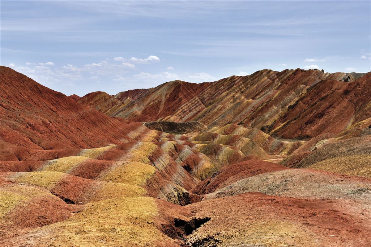 Nach dem Frühstück fahren wir zum Zhangye Danxia National Geopark, der für seine farbenprächtigen, regenbogenfarbigen Felsformationen bekannt ist (ca. 330 km). Nach der Besichtigung setzen wir die Fahrt nach Zhangye fort, eine ebenfalls einst wichtige Stadt an der Seidenstraße, wo wir am Abend in einem lokalen Restaurant essen.