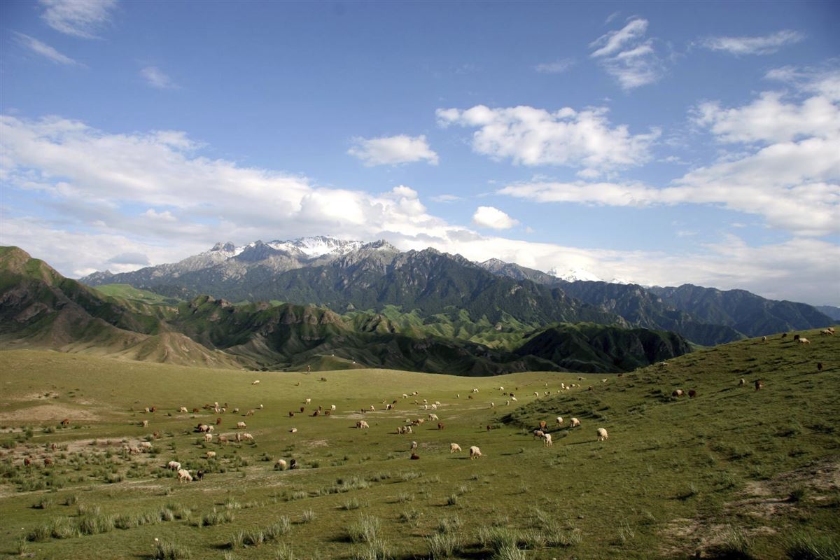 Am Morgen erreichen wir Urumqi, Hauptstadt der autonomen Region Xinjiang, und fahren zunächst ins Hotel, wo wir frühstücken. Anschließend ein Ausflug ins Naturschutzgebiet Nanshan, etwa 150 Kilometer von der Stadt entfernt. Die wunderschöne, lieblich-grüne Hügellandschaft, auch als "Nanshan Weide" bekannt, gehört zu den Ausläufern des Tianshan-Gebirges und bildet einen reizvollen Kontrast zu den Wüstenregionen der letzten Tage. Am Abend kehren wir nach Urumqi zurück.