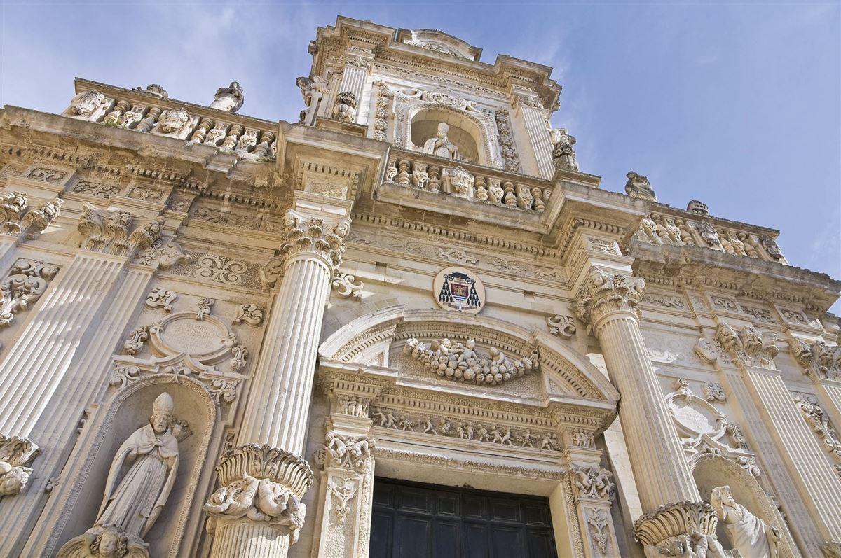Am Morgen Treffen mit unserem Reiseleiter und Fahrt nach Lecce. Die ehemaligen Baumeister haben hier aus gelbem Lecceser Kalkstein eine einzigartige Architektur erschaffen. Wir sehen auf unserem Rundgang einige der prachtvollen Barockbauten wie u. a. die Basilika Santa Croce, die Kathedrale Sant’Oronzo und den Palazzo di Governo. In einem typischen Café des Salento probieren wir den typischen "Lecceser Kaffee" mit Eiswürfeln und Mandelmilch. Am Nachmittag besuchen wir Galatina und lernen auf einem Stadtrundgang die Geschichte der Heiligen Katharina kennen. Rückkehr zu unserem Hotel.