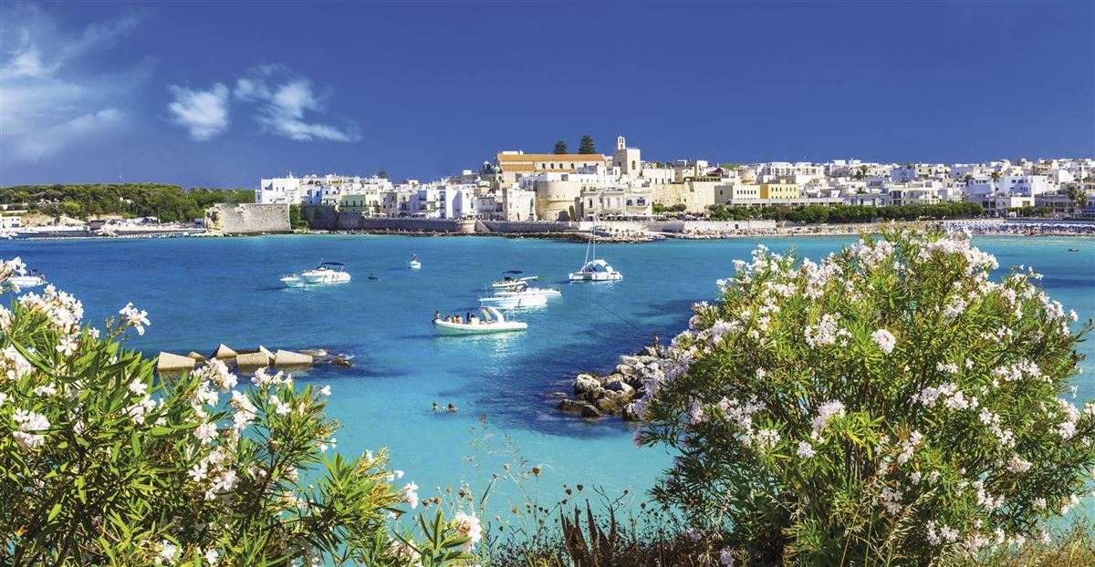 Vormittags besuchen wir Bari, die Hauptstadt Apuliens, Sitz des Erzbischofs und der Universität. Der Hafen von Bari, das sogenannte „Tor zum Orient“, ist ein wichtiger Umschlagplatz für Waren aus dem Mittelmeerraum. Geführter Rundgang und Besichtigung des historischen Altstadtkerns, um den sich drei sehenswerte romanische Kirchen gruppieren; die Kathedrale, die Kirche San Nicola und die reizvolle Kirche San Gregorio. Im Westen der Stadt erhebt sich majestätisch das Kastell, eine byzantinisch-normannische Gründung mit Erweiterungen durch Friedrich II. Am Nachmittag lernen wir das faszinierende Städtchen Polignano a Mare kennen. Es ist berühmt für seine atemberaubende Küste und seine Vielzahl an Grotten, die sie umgibt. Spaziergang durch die schöne Altstadt, entlang der verwinkelten Gassen mit weiß getünchten Häusern. Ebenso sehen wir die wichtigste Kirche der Stadt, die Chiesa Matrice. Am "Lama Monachile", dem beliebtesten Strand der Stadt, erleben wir die Einzigartigkeit von Polignano a Mare und haben Zeit, das klare Wasser der Adria zu genießen und die antike römische Brücke zu bewundern.