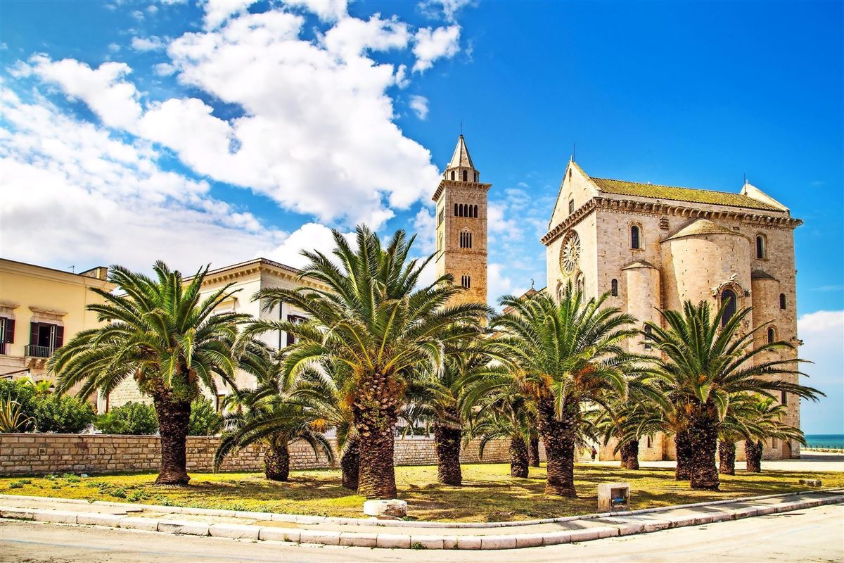 Nach dem Frühstück fahren wir nach Trani, wo wir das Schmuckstück der Apulischen Romantik, die Kathedrale San Nicola Pellegrino, auch bekannt als Kirche „zwischen Himmel und Meer“, besichtigen. Anschließend Rundgang durch die romantische Stadt und Weiterfahrt in Richtung Castel del Monte. Unterwegs Weinverkostung mit verschiedenen regionalen Spezialitäten. Am Nachmittag erwartet uns, kurz außerhalb von Andria auf einer Anhöhe, das berühmteste Denkmal Apuliens: die achteckige Stauferburg Castel del Monte. Was hat Friedrich II. sich mit diesem Schloss vorgestellt? War es, wie Esoteriker sagen, ein Sonnenkalender? Oder gibt es einen Zusammenhang zwischen dem Grundriss des Kastells und der Cheopspyramide? Wir versuchen, auf unserem Besuch diesen Geheimnissen näher zu kommen. Rückkehr nach Alberobello und Abendessen im Hotel.