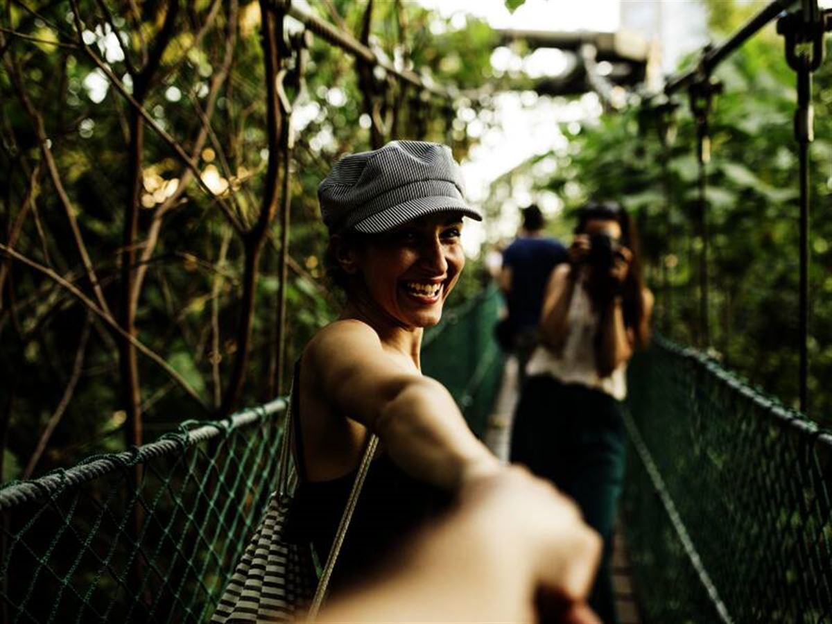 Den Äquator zu überqueren ist am Monument Mitad del Mundo ein Kinderspiel: ein Schritt vor, ein Schritt zurück ... In Mindo erwartet uns am Nachmittag unsere Lodge mit Blockhauscharme. Schon einmal auf den Naturpfaden im üppigen Grün auf eigene Entdeckungen gehen? Flattert dort drüben eine Grüne Fadenelfe? Oder ist's ein Veilchenohrkolibri?