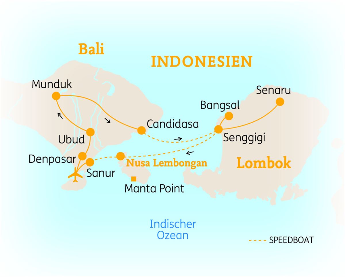 Setzen Sie mit dem Speedboat zur Nachbarinsel Lombok über! Dort fahren Sie nach Senggigi, einem malerischen Küstenort mit einladenden Stränden und vielfältigen Aktivitäten. Entspannen Sie am Strand, probieren Sie die lokale Küche oder erkunden Sie die örtliche Kultur bei einem Bummel durch die Märkte. 3 Nächte in Senggingi. (F)