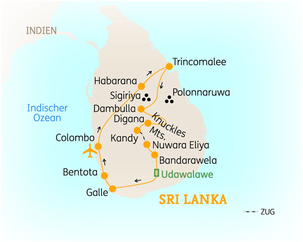 Zu gegebener Zeit fahren Sie zum Flughafen Colombo. Sie fliegen nach Hause. (F)