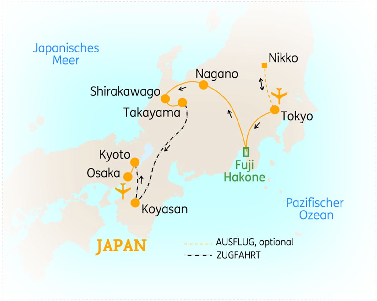 Alternativ können Sie einen optionalen Tagesausflug nach Nikko buchen (optional, 165 € p.P., mind. 2 Pers., bitte bei Anmeldung mitbuchen). Der weitläufige Schrein- und Tempelbezirk inmitten des reizvollen Nikko-Nationalparks gehört zum UNESCO Weltkulturerbe und ist ein kulturelles Highlight einer jeden Japanreise. (F)