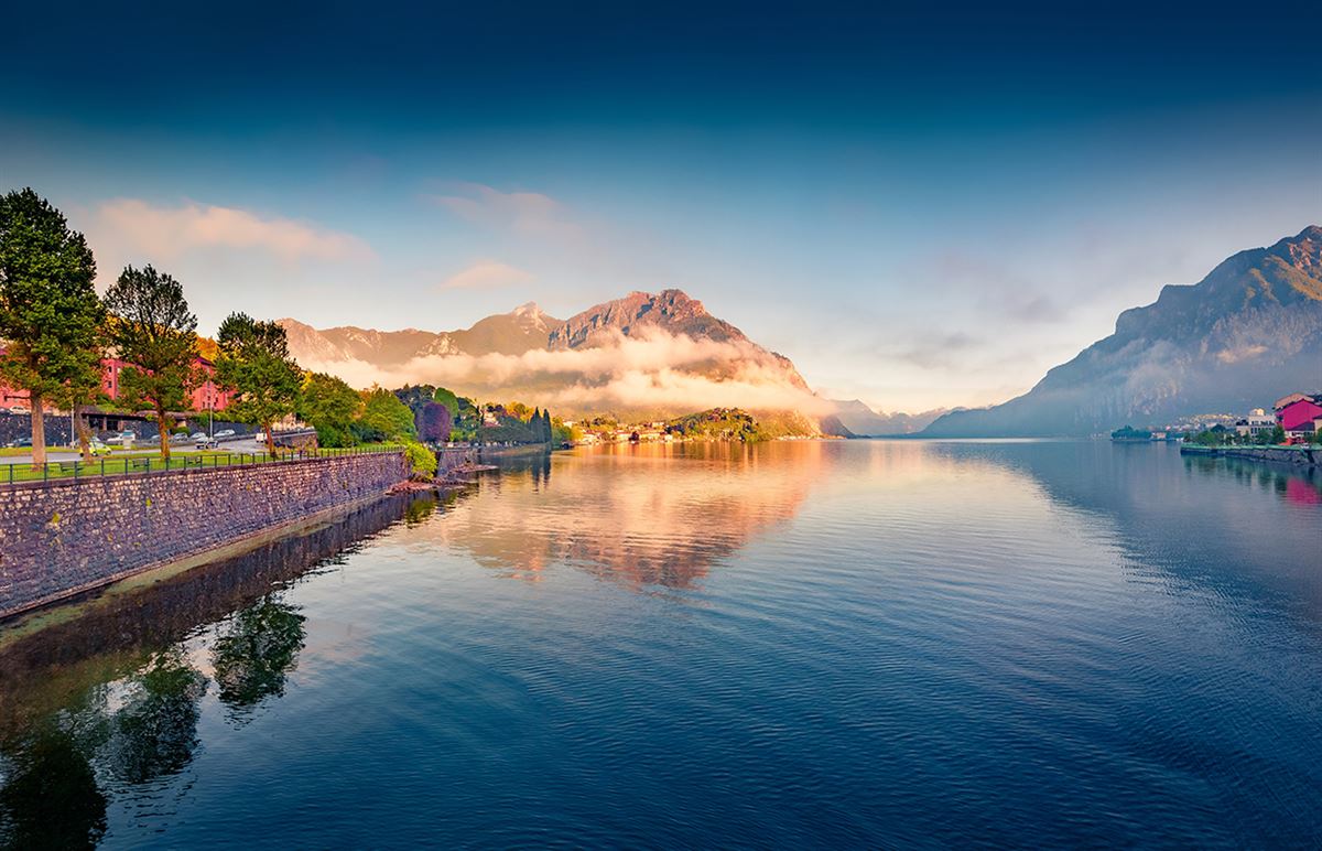 Nach einem kurzen Spaziergang erreichen wir den Anleger für die Bootstour auf dem Comer See. Erste Zwischenstation der Fahrt ist Bellagio, ein malerisch auf der Spitze einer Halbinsel gelegener Ort. Besonders der Blick auf die beiden Arme des Sees im Süden und die Alpen im Norden haben dem Ort zu seiner Beliebtheit verholfen. Anschließend geht es hinüber auf das Ostufer zum Ausläufer des Monte San Defendente, nach Bellano. Der kleine und gemütliche Ort mit seinem kleinen, alten Fischerhafen liegt idyllisch dem Berg zu Füßen. Wir flanieren ein wenig auf der wunderbaren Promenade, und dann geht es im Bus ganz hinunter an den südöstlichen Teil des Sees in die Provinzhauptstadt nach Lecco. Die »Alpenstadt des Jahres 2013« hat sich unter anderem durch Städtepartnerschaften, aktive Einbindung der Bevölkerung in Projekte und die Schaffung eines nachhaltigen Alpenbewusstseins einen Namen gemacht. Nach einem Rundgang fahren wir zurück nach Como. 60 km