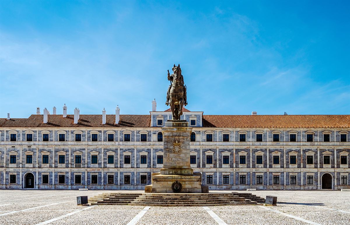 Ein prachtvoller Palast erwartet uns in Vila Viçosa - einst Residenz der Herzöge von Bragança. Hier erzählen uns Marmorfassaden, weite Höfe und elegante Säle von fürstlicher Vergangenheit. Sanfte Hügel, Korkeichen und Olivenhaine begleiten uns auf der Weiterfahrt durch den Alentejo. Diese Region überzeugt auch kulinarisch mit deftiger Küche und charakterstarken Weinen. Évora empfängt uns mit weiß getünchten Häusern, verwinkelten Gassen und dem lebendigen Giraldo-Platz. Römische Geschichte und feines Handwerk aus Kork prägen das Stadtbild. Stille und Nachdenklichkeit erfüllt die Capela dos Ossos, die Knochenkapelle, wo Schädel und Gebeine eindrucksvoll an die Vergänglichkeit erinnern. Über eine der Brücken überqueren wir den Tejo und unser Weg führt weiter nach Queluz. 200 km