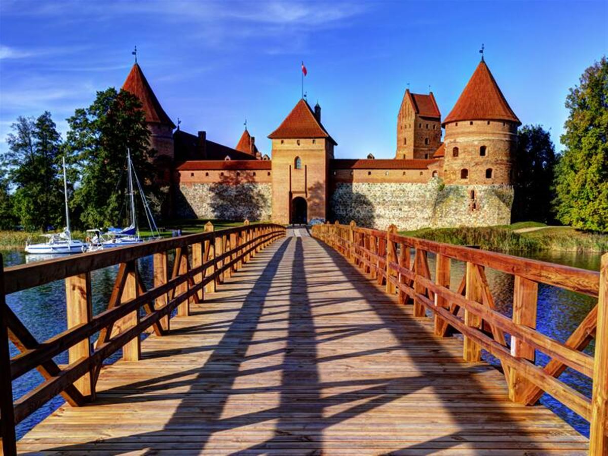 Wir starten den Tag am Tor der Morgenröte. Danach sehen wir uns die Kirche St. Peter und Paul an, bevor es aufs Land hinausgeht. Die Wasserburg von Trakai liegt malerisch in einer Seenlandschaft, besteht zur Hälfte aus Backstein und dient zur Gänze als Symbol für die Einheit der Nation. Wir besichtigen die Burg und sehen uns auch die typischen Holzhäuser der Karäer, eine Volksgruppe, die bis heute hier lebt, genauer an. Zurück in Vilnius gestalten Sie das Programm - vielleicht ein Besuch im MO, dem Museum für moderne Kunst, entworfen von Stararchitekt Daniel Libeskind? 60 km. Abends feiern wir gemeinsam in einem Restaurant Abschied.