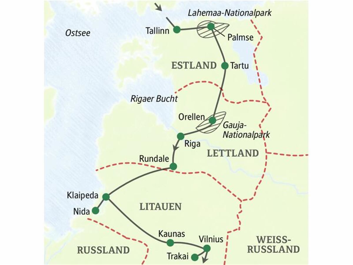 Im Lahemaa-Nationalpark am Ostseestrand begrüßen uns faszinierende Flora und Fauna und das prächtige Herrenhaus Palmse. Den nördlichsten Punkt unserer Reise erreichen wir im kleinen Dorf Altja. Das feiern wir mit heimischem Obstwein, den Ihr Reiseleiter für Sie dabeihat. Vom ihm erfahren Sie auch, welch spannende Geschichten sich um die Findlinge in der hiesigen Bucht ranken. Danach stärken wir uns mit einer kräftigen Mahlzeit in einem urigen Gasthaus. Wieder im Bus sprechen wir über Estlands Spagat zwischen Naturschutz und ökonomischem Aufschwung. 210 km. Vom Schwung der Universitätsstadt Tartu überzeugen wir uns auf unserem Rundgang im historischen Stadtkern. Kulinarische Tipps für den freien Abend gibt Ihr Reiseleiter.