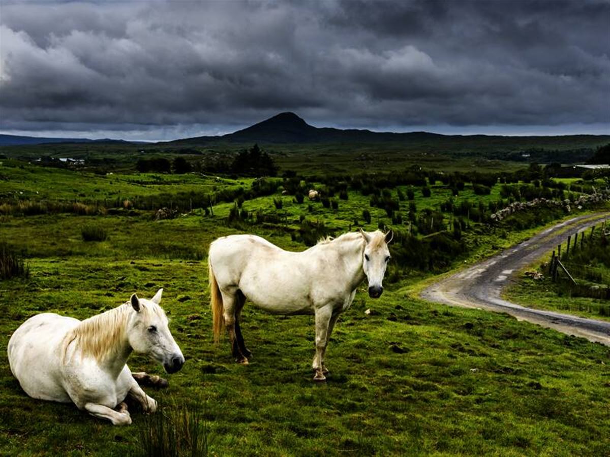 Ein Stück Bilderbuch-Irland: Moore und Weiden, weiße Strände und tiefblaue Seen, dazwischen Ponys und Schafe "on tour". Verschlief die Connemara auch jeden Wirtschaftsboom, die melancholische Schönheit der Region verzaubert auch uns. Inmitten der Idylle zeigt uns Martin, wettergegerbter Ire mit kräftiger Singstimme, wie er nach alter Tradition Torf sticht. Wer mag, greift selbst zum Spaten. 150 km.