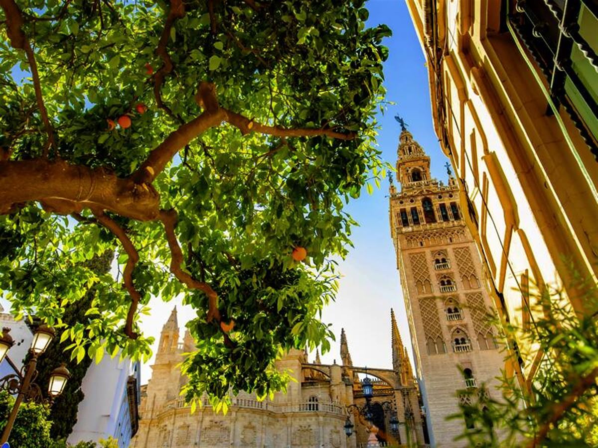 Don Giovanni und der Barbier von Sevilla lebten und liebten in der andalusischen Hauptstadt. Und wo heute studiert wird, rollte Georges Bizets Carmen Zigarren. Auch uns bietet die kapriziöse Stadtschönheit Sinnenfreude wie auf der Opernbühne: Bitterorangenduft in der Nase, Sevillanas im Ohr begleiten uns beim Spaziergang zur Plaza de España im María-Luisa-Park, der grünen Lunge der Stadt. Dann erwarten uns zwei Höhenflüge mittelalterlicher Kunst: Goldschätze aus der Neuen Welt in Spaniens größter Kathedrale (UNESCO-Welterbe), mit ihrem Glockenturm, der Giralda. Wo einst der Muezzin zum Gebet rief, liegen uns heute die Altstadtgassen zu Füßen. Maurische Wohnkultur fasziniert uns später im Alcázar (UNESCO-Welterbe). 320 km.