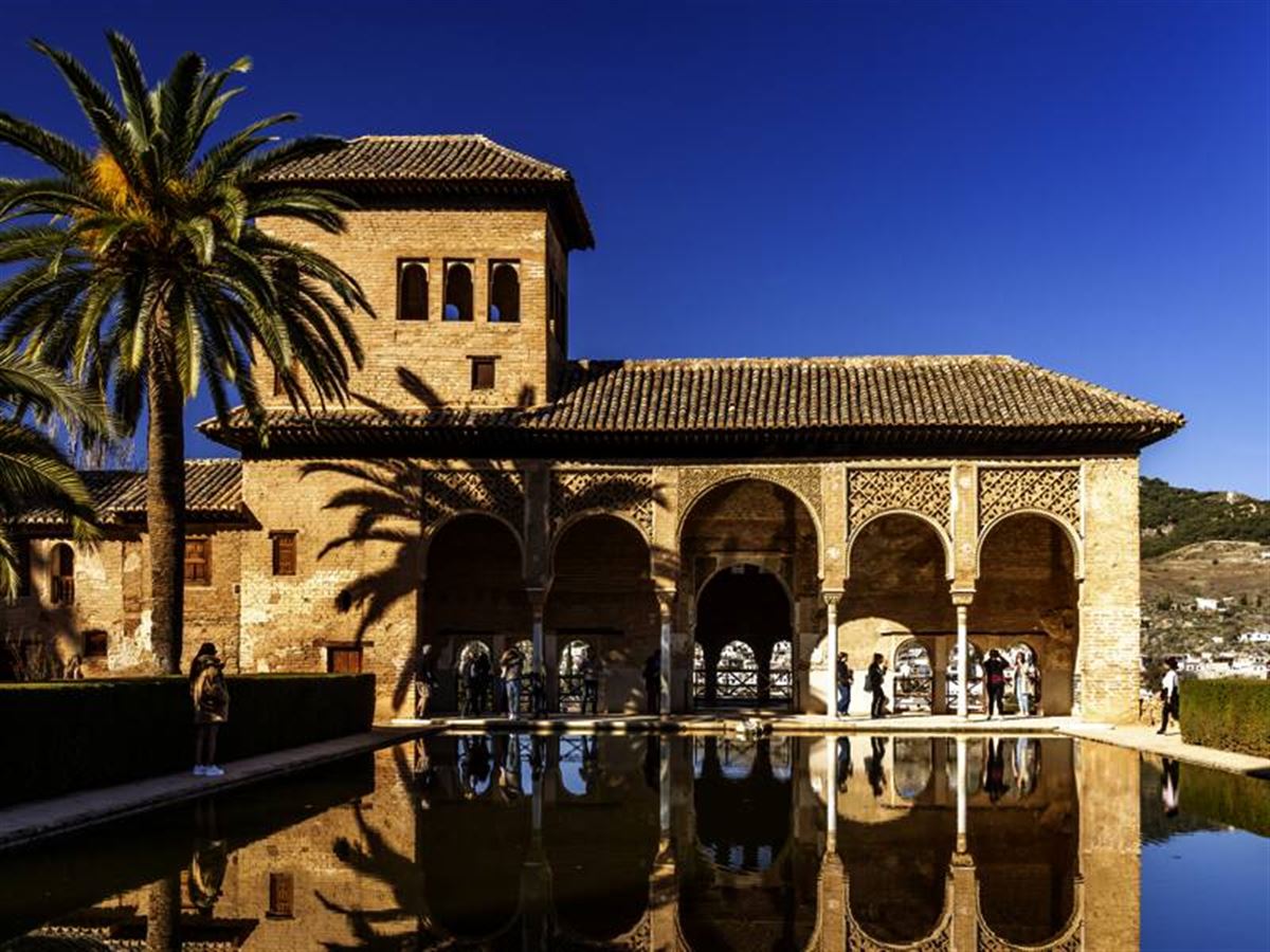 "Erzählungen von der Alhambra" stimmen uns auf den Besuch der Maurenburg ein, die wie ein Märchenschloss vor uns liegt. Auf der Alhambra wirkten Andalusiens beste Künstler zum Ruhme Allahs und schufen ein Abbild vom Paradies: filigrane Arabesken, Kalligrafien aus Zedernholz und Marmorstaub und immer wieder Brunnen, aus denen Wasser im Überfluss sprudelt – in einer Trockenregion kostbarer als alles Gold der Welt! Die duftige Zugabe: die Gärten des Generalife. Den Rest des Tages verbringen Sie nach Lust und Laune. Vielleicht lassen Sie die Alhambra beim Café con Leche noch ein bisschen nachklingen. Ein Tipp fürs Abendessen: Im Restaurant Carmen de Aben Humeya kocht man in stilvollem Ambiente andalusisch. Gratis dazu: der Traumblick auf die beleuchtete Alhambra.