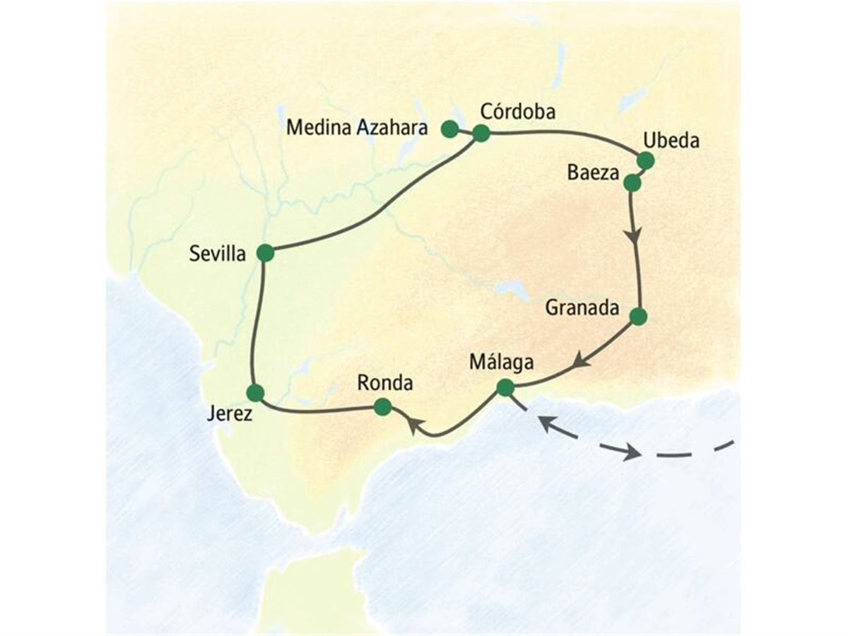 Olivengrün schimmert das Land rund um Jaén, wo Bauern die öligen Früchte für den Export pressen. Ein lohnendes Geschäft? Fragen Sie Ihre Reiseleiterin. Wenn im Bus der weiche Tenor von Plácido Domingo erklingt, sind wir am Ziel angekommen: Granada! Mönchische Stille erwartet uns im Kartäuserkloster, verwinkelte Gassen im einstigen Maurenviertel Albaicín. Zielsicher lotst Ihre Reiseleiterin Sie zum schönsten Fotoblick: die Alhambra vor den schneebedeckten Gipfeln der Sierra Nevada. In Kathedrale und Königlicher Kapelle tauchen wir dann in die Epoche der Katholischen Könige ein. Irrungen, Wirrungen und eine folgenreiche Entdeckungsfahrt – hier blättern wir ein besonderes Kapitel andalusischer Geschichte auf, spannend wie ein Thriller! 140 km. Zwei Übernachtungen in Granada.
