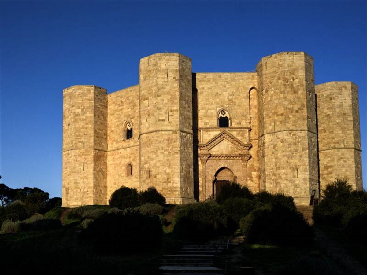 Bei einer Rundreise durch die sich in der Mitte von Apulien erstreckenden Hochebene Murge ist ein Besuch des etwa 15 Kilometer südlich vom Zentrum der Stadt Andria auf einem Hügel gelegenen Castel del Monte ein Muss. Dieses Mitte des 13. Jahrhunderts auf Befehl des römisch-deutschen, von vielen Zeitgenossen "Das Staunen der Welt" genannten Kaisers Friedrich II. erbaute Kastell ist in mancher Hinsicht bemerkenswert Trotz seines auf den ersten Blick festungsmäßigen Anblicks ist das zum UNESCO-Weltkulturerbe gehörende Castel del Monte kein Wehrbau. Es fehlen festungstypische Elemente wie Schießscharten, Munitionsräume oder Kasernen. Aufgrund der dürftigen Quellenlage kann nur vermutet werden, ob Friedrich II. den Bau als Lust- oder Jagdschloss, als kontemplativen Rückzugsort oder als steingewordenes Symbol Hohenstaufischer Macht in Italien in Auftrag gegeben hat. Bemerkenswert ist das sich im Kalkstein-Bau mehrmals wiederholende Acht-Prinzip. So ist der Grundriss achteckig, der Innenhof ebenfalls und es gibt an jeder der acht Ecken einen 24 Meter hohen Turm. Man kann das Kastell übrigens auch leicht in die Tasche stecken: Es ist nämlich das Rückseiten-Motiv auf den italienischen Ein-Cent-Stücken.