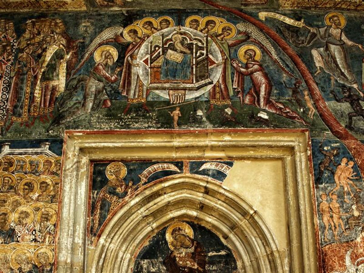 Um unsere Köpfe herum schweben Selige auf Wolken, und Sünder purzeln von Himmelsleitern – in der "Sixtinischen Kapelle des Ostens", dem Kloster Voronet (UNESCO-Welterbe), mildert das leuchtende Lapislazuli-Blau der Fresken den apokalyptischen Schrecken des Jüngsten Gerichts. Danach können wir diskutieren, welches wohl die schönste der drei Klosterperlen der Bukowina ist. Dann windet sich unser Bus über den Borgopass nach Neumarkt (Targu Mures) und durch das Land der Ungarisch sprechenden Szekler weiter nach Schäßburg (Sighisoara). 320 km. Zwei Übernachtungen.