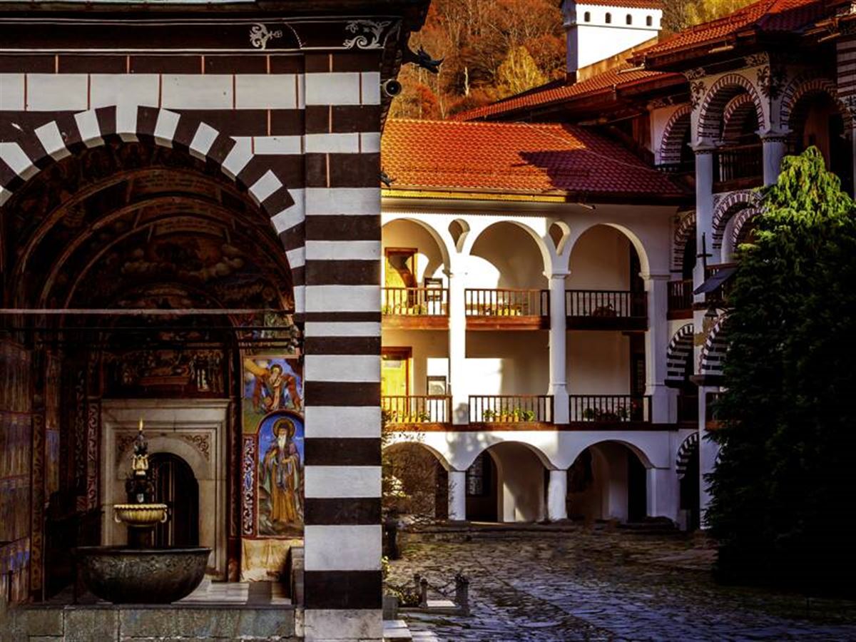 Im südwestlichen Bulgarien, im Rila-Gebirge liegt das herrliche Rila Kloster, umsäumt von weiten Wanderwegen und dem Bach Drusljawiza. Es ist das bedeutendste und größte Kloster des Landes. Sind Sie ein Geschichtsfreund, dann sollte Sie Ihre Rundreise durch Bulgarien auch zum Rila Kloster führen. Das herrliche Bauwerk wurde im 10. Jahrhundert gegründet und besticht mit seinen Wandmalereien und den religiösen Fresken. Die Hauptkirche des Bauwerks besteht aus 5 Halbkuppeln und die berühmtesten bulgarischen Maler haben den Innenraum gestaltet. Hier scheint die Zeit noch stehen geblieben zu sein. Das fantastische Kunstbauwerk mit seinem Museum wird Sie begeistern. Bewundern Sie die alten Waffensammlungen der Wachtposten, sowie Münzen und Urkunden der Zaren. In der einstigen Klosterküche erwarten Sie alte ländliche Gebrauchsgegenstände. Vom Kloster aus können Sie auch die Hauptstadt Sofia schnell erreichen. Zahlreiche Überlieferungen deuten darauf hin, dass einst der Heilige Iwan Rilski im Kloster beheimatet war. Er wurde durch seine Wunderheilungen bekannt.