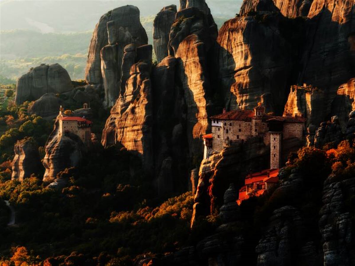 In Dodona flüstert uns der Eichenbaum neben dem Orakel sein Geheimnis zu, und die Theater und Tempel kitzeln die Fantasie. In Ioannina durchstreifen wir die malerische Altstadt mit ihrer Zitadelle und den wehrhaften Mauern; Minarette und osmanische Architektur zaubern etwas Orientflair herbei. Auch das lassen wir uns nicht entgehen: eine Bootsfahrt auf dem Pamvotida-See, auf der Insel Nisi Ioanninon gegrillte Forelle in einer Taverne und Kunst in byzantinischen Klosterkirchen. Weiterfahrt mit dem Bus durch das bewaldete Pindosgebirge nach Kastraki am Fuße der Meteorafelsen. Busstrecke 210 km.