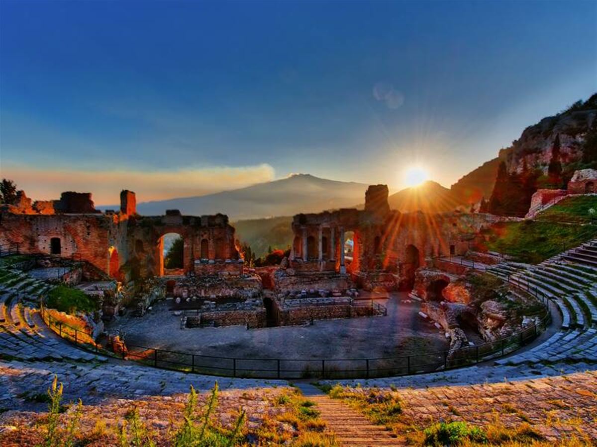 Zum Reiseauftakt geht es nach Taormina: Ist die Jetset-Ära auch längst passé, die Stadtkulisse bietet nach wie vor reichlich Glamour. Der Blick aufs schönste Bühnenbild Siziliens im griechisch-römischen Theater - die "vista sul mare" mit dem Kegel des Ätnas - ist gleich ein beeindruckender Höhepunkt. Danach Spaziergang durch den Stadtpark mit vielen exotischen Pflanzen, die eine berühmte englische Gartenschöpferin arrangierte. Der Nachmittag bleibt frei für individuelle Mußestunden. Wer möchte, bleibt in Taormina - mit Mandelmilch und Granita und einem Bummel über den Corso Umberto. Zurück ins Hotel kommen Sie mit dem Taxi oder dem öffentlichen Bus.