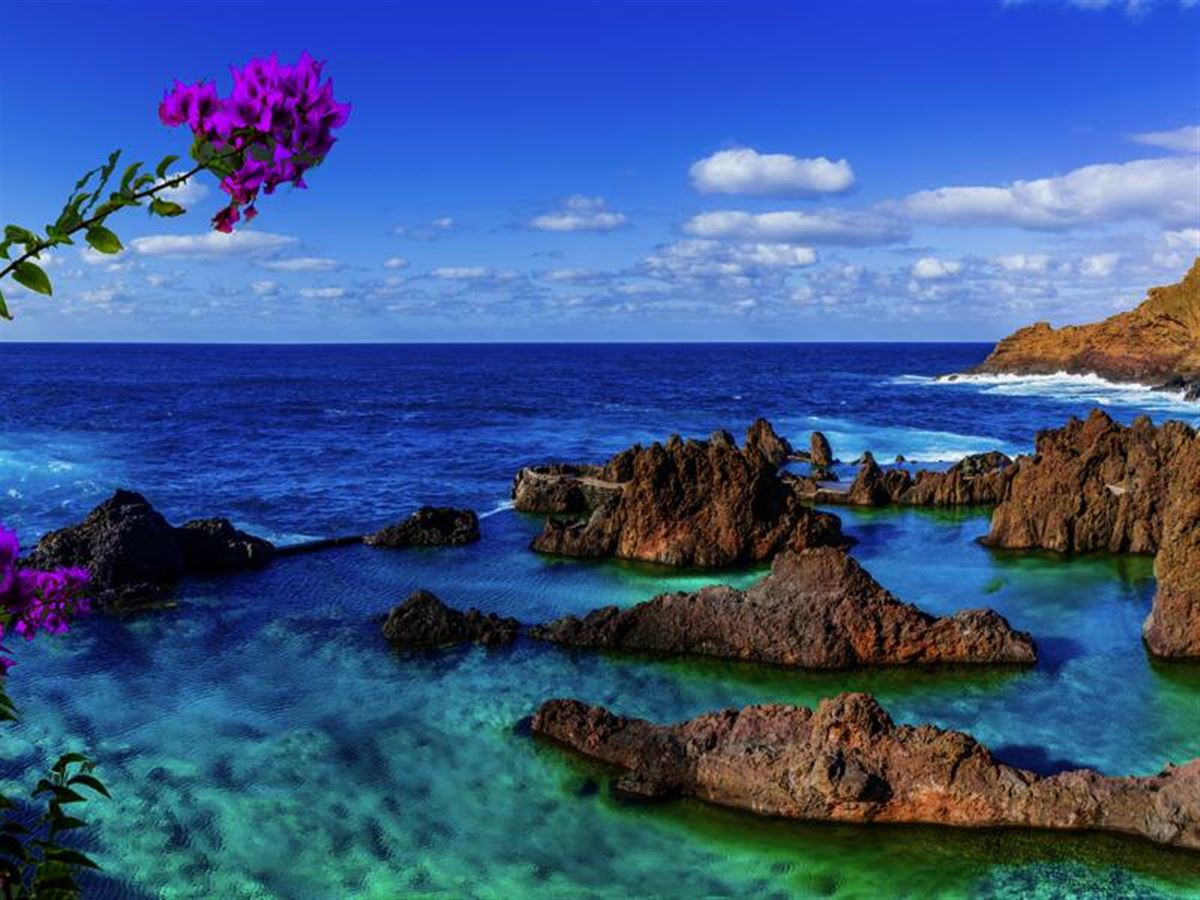 Wir machen uns auf den Weg in den rauen Westen von Madeira. In der Hochebene Paúl da Serra ändert sich die Szenerie schlagartig: Das Hochmoor erinnert eher an Schottland als an das subtropische Madeira. In Fanal wachen uralte Lorbeerbäume als Ureinwohner über die hier oft neblige Insel. Im Weinbauernort Porto Moniz an der Nordküste locken die natürlichen Felsenpools zu einem Sprung in das kühle Wasser. Über die Küstenstraße im Norden, vorbei an Wasserfällen und bizarren Felsnadeln im Meer, erreichen wir den Ort Seixal. Hier erwartet uns eine Weinprobe mit köstlichen Tapas nach Art des Hauses. Saúde! Auf der Terrasse mit atemberaubender Aussicht auf die steile Nordküste lassen wir uns vom Weinbauern und seiner Familie kulinarisch verwöhnen. 150 km.