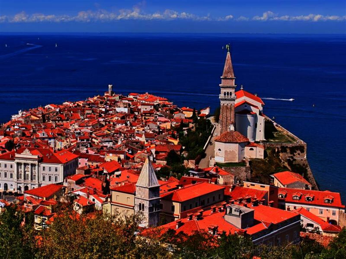 Piran ist eins der schönsten Ferienorte an der Adriaküste und bei einer Rundreise durch Slowenien ein immer wieder begehrtes Ausflugsziel. Die Umgebung ist auch wegen ihrer zahlreichen Salinen bekannt, wo bis heute noch eine erstklassige Salzblüte geschöpft wird. Die Stadt ist von engen Gassen aus Kopfsteinpflaster, Häusern mit orangen Dachziegeln, venezianischen Bauten sowie einem langen wunderschönen Pier geprägt. Alles in Einem, das perfekte Reiseziel für Urlauber, die in einem mediterranen Ambiente was entdecken und auch entspannen möchten. Wie wäre es mit einem Spaziergang zur alten Stadtmauer mit dem antiken Wachturm? Von hier aus bietet sich ein atemberaubender Ausblick auf die Stadt. Nur ein paar Gehminuten entfernt, treffen Sie auf den bekannten Tartini-Platz mit dem gleichnamigen Denkmal in der Mitte und dem berühmten Venezianer-Haus. Eins der beliebtesten Sehenswürdigen von Piran ist zweifelsohne die traumhafte Strandpromenade Preernovo nabrezje. Hier können Sie nach Herzenslust Schwimmen, Bummel gehen und Flanieren und in einem der gemütlichen Straßencafés und Restaurants eine leckere Mahlzeit zu sich nehmen und dem bunten Treiben entspannt zusehen.