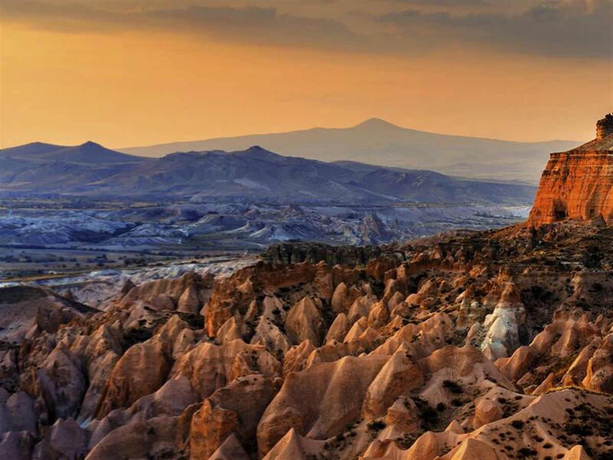 Bahnanreise 1. Klasse zum Flughafen und Flug mit Turkish Airlines über Istanbul nach Kayseri. Transfer zum Hotel (70 km), wo Sie am Abend Ihre Studiosus-Reiseleiterin begrüßt. Mit einer bunten Auswahl türkischer Vorspeisen starten wir in unser Willkommensdinner und schmecken uns häppchenweise in das türkische Lebensgefühl hinein. Sieben Übernachtungen in Ürgüp.