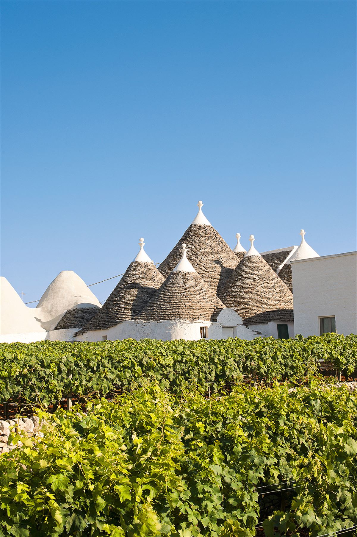 Lediglich ca. 20 km trennen Sie von der „Stadt der Zipfelmützen“, dem UNESCO-geschützten Ort Alberobello mit seinen berühmten Trulli-Rundbauten.