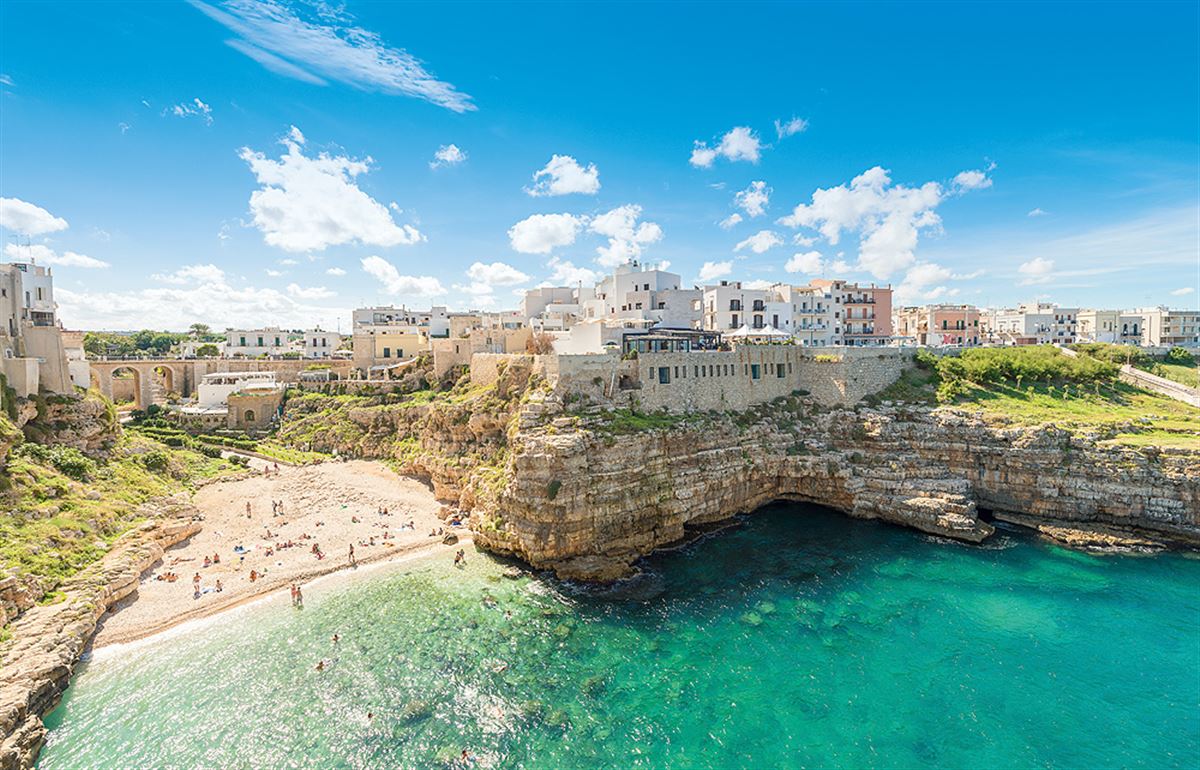 Entdecken Sie heute die charmante Barockstadt Martina Franca mit ihren eleganten Palazzi Panelli, Blasi e Motolesi sowie der imposanten Basilika S. Martino. Alternativ können Sie auch eine faszinierende Reise 70 Meter tief hinab in die unterirdische Zauberwelt der Grotten von Castellana unternehmen, die mit ihrer strahlend weißen Alabastergrotte beeindrucken. Die Hafenstadt Monopoli (ca. 30 km entfernt) und der nahegelegene Ort Polignano a Mare, der spektakulär auf einem Küstenfelsen thront, sind ebenfalls landschaftlich reizvolle Ziele, die einen Besuch wert sind.