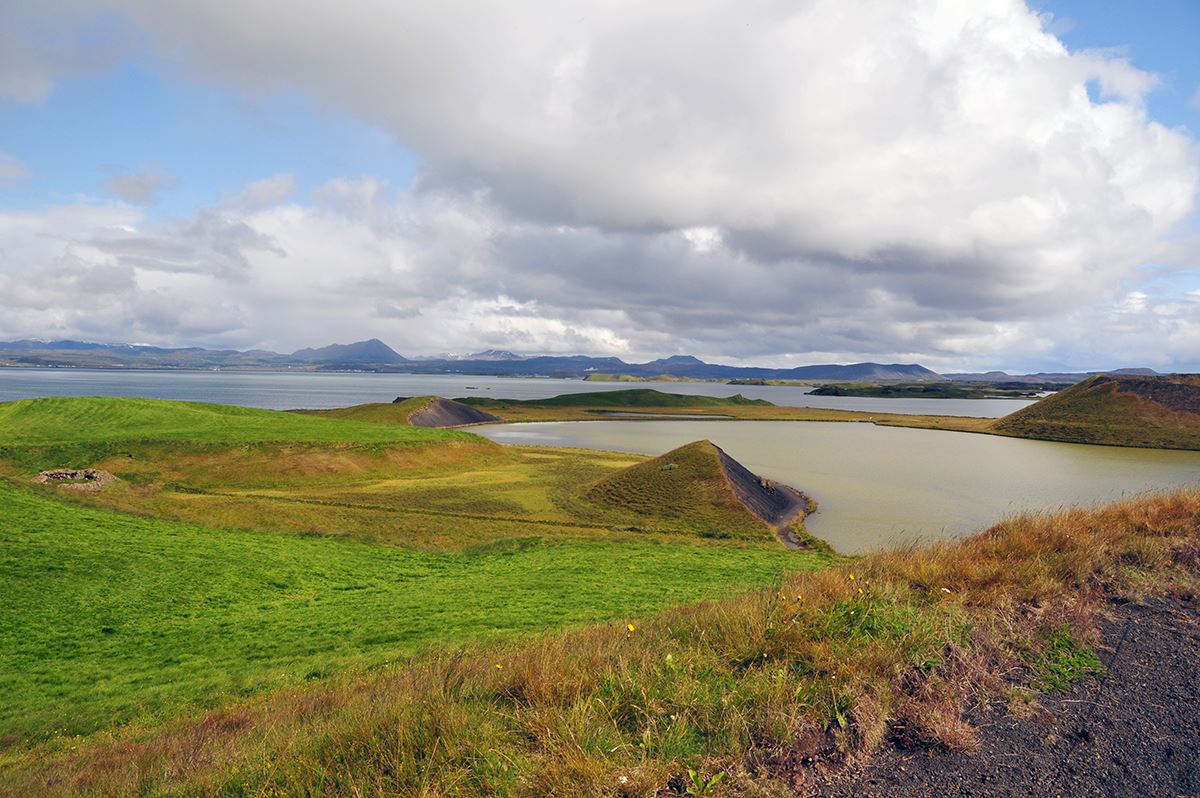 Über die einsame und mondähnliche Hochebene bei Möðrudalur gelangen wir in das Gebiet des Sees Mývatn. Die Sehenswürdigkeiten dieser Gegend machen Mývatn zu einem Paradies für Naturfreunde. Wir erkennen direkt, dass die Vielfalt der vulkanischen Bildungen hier besonders stark ausgeprägt ist. Uns wird klar warum Schwefel oft mit dem Teufel in Verbindung gebracht wird: Brodelnde Schlammquellen, Sümpfe und eine dampfende Erdoberfläche dominieren das Geothermalgebiet von Námaskarð. Wir spüren förmlich welche Kräfte und welche Hitze im Inneren der Erde toben. Wir staunen über die Natur und ihre prächtigen Farben. 200 km (