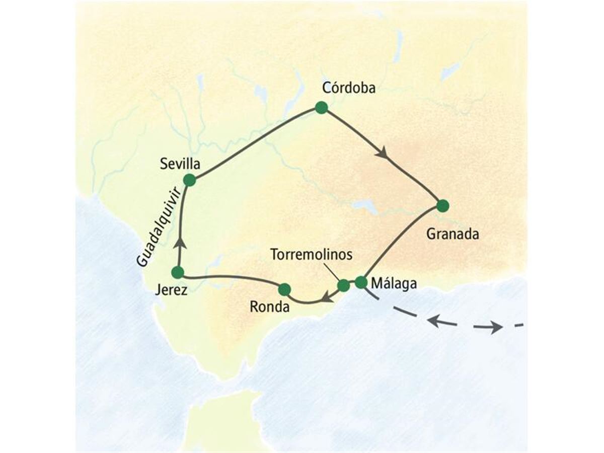 Bahnanreise 1. Klasse zum Flughafen und Flug nach Málaga. Wann auch immer Sie am Mittelmeer eintreffen, wir holen Sie vom Flughafen ab und bringen Sie in Ihr Strandhotel in Torremolinos. 10 km. Je nach Ankunftszeit bleibt noch Zeit für Strand, Meer und Sonne. Ein perfekter Start in den Urlaub! Abends begrüßt Sie Ihr Studiosus-Reiseleiter. Wer Übernachtung mit Frühstück gebucht hat und auf kulinarische Entdeckungsreisen gehen möchte, lässt sich von ihm den Weg ins Restaurante Juan verraten. Hier gibt’s die besten Coquinas, kleine, aromatische Muscheln, weit und breit!