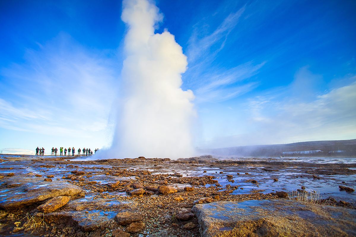 Unsere Reise beginnt mit der Fahrt zu den meistbesuchten Sehenswürdigkeiten des Landes. Der Nationalpark Thingvellir ist historisch sowie geologisch von großer Bedeutung und hier ist deutlich zu erkennen, wie die Kontinentalplatten, auf denen Island gelegen ist, auseinanderdriften. Der nächster Halt ist am berühmten Geothermalgebiet Haukadalur, das auf keiner Islandreise fehlen darf. Die Springquelle Strokkur schießt hier in regelmäßigen Abständen eine 25 bis 30 Meter hohe Fontäne in die Luft. In der Nähe befindet sich mit dem Gullfoss einer der schönsten Wasserfälle des Landes. Die gewaltigen Wassermengen des "goldenen" Wasserfalls stürzen in mehreren Stufen in eine tiefe Schlucht. Bevor es zu unserem Tagesziel Vik geht, besuchen wir den Hof Efstidalur, der auf Michviehhaltung spezialisiert ist. Isak und seine Familie machen uns mit ihren Kühen bekannt und zeigen uns, wie sie selber Eiscreme, Skyr und Käse herstellen. Natürlich dürfen wir die Produkte auch probieren. 310 km
