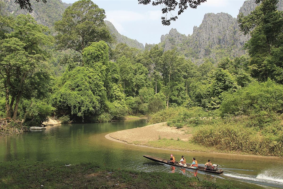 Nach dem Frühstück im Hotel brechen wir früh auf, denn heute liegt eine längere Überlandetappe vor uns. Zunächst halten wir außerhalb von Savannakhet am That Ing Hang, einem der wichtigsten religiösen Bauwerke in Laos, nach dem berühmten That Luang in Vientiane. Die eindrucksvolle Stupa gilt als bedeutender Pilgerort des Theravada-Buddhismus und ist ein stilles Zeugnis jahrhundertealter Gläubigkeit. Anschließend setzen wir unsere Fahrt in Richtung Norden fort. Die landschaftlich reizvolle Strecke führt uns in die Provinz Khammouane. In den frühen Abendstunden erreichen wir schließlich unser Resort im Raum Hinboun, unweit der bekannten Kong-Lor-Höhle – eine abgelegene Region mit ursprünglicher Natur, die am nächsten Tag von uns erkundet wird. (170 km)