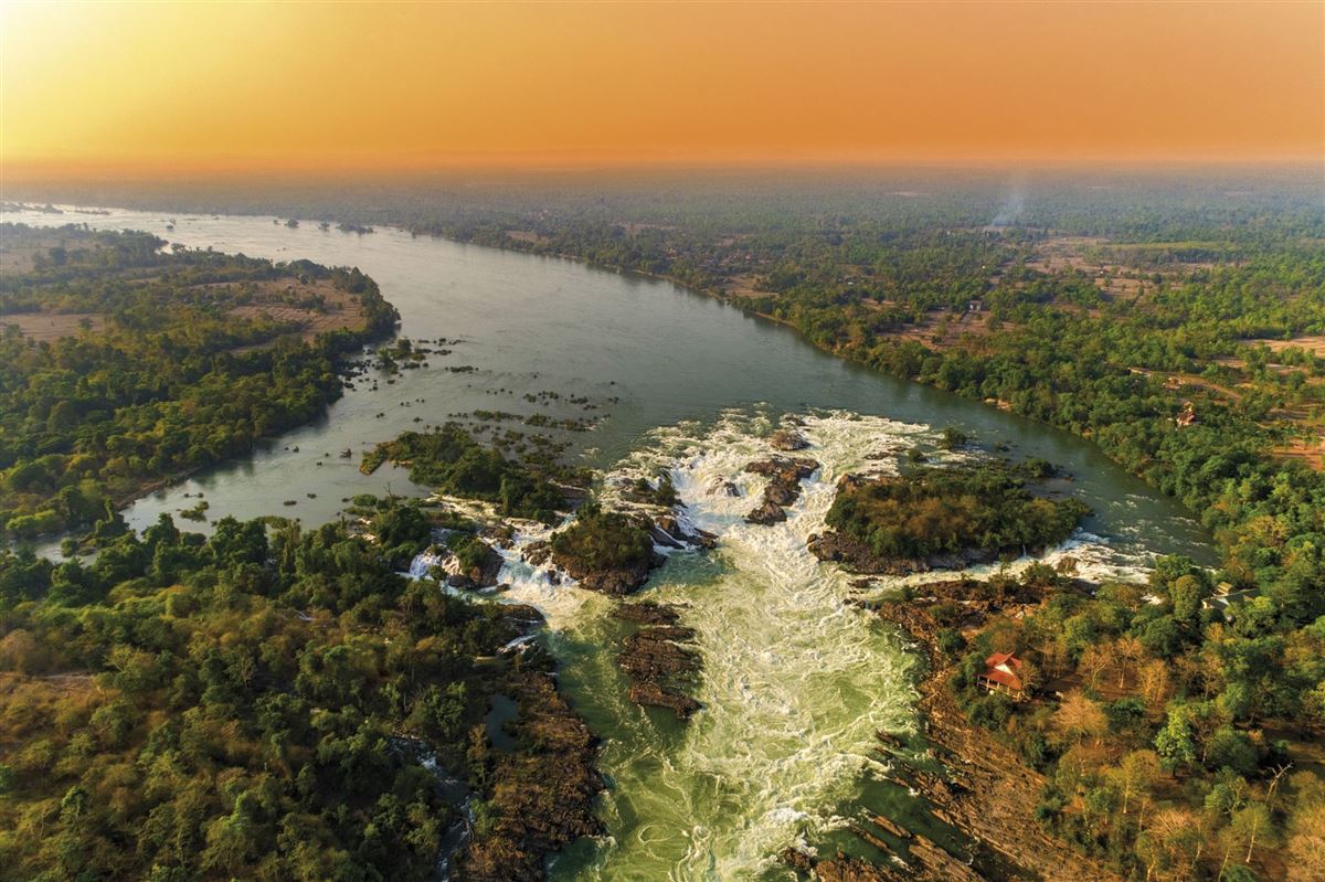 Nach dem Frühstück fahren wir nach Don Khong, der größten Insel im Gebiet der sogenannten „4000 Inseln“. Von hier aus beginnt unsere Bootsfahrt zu den kleineren Inseln Don Khone und Don Det, die mit ihrer entspannten Atmosphäre und kolonialen Geschichte faszinieren. Hier sehen wir Überreste der französischen Eisenbahnlinie, die einst zur Umgehung der Khone Phapeng-Wasserfälle gebaut wurde, eine alte Dampflokomotive zeugt noch heute davon. Ein kurzer Spaziergang führt uns zu den Liphi-Wasserfällen, auch als „Kaffee-Wasserfälle“ bekannt, bevor wir mit einem kleinen Boot zurück zum Festland übersetzen. Am Nachmittag besuchen wir die beeindruckenden Khone Phapeng-Wasserfälle, die größten Wasserfälle Südostasiens, ein Naturschauspiel am mächtigen Mekong. Anschließend Rückfahrt nach Champasak, wo wir am frühen Abend ankommen.