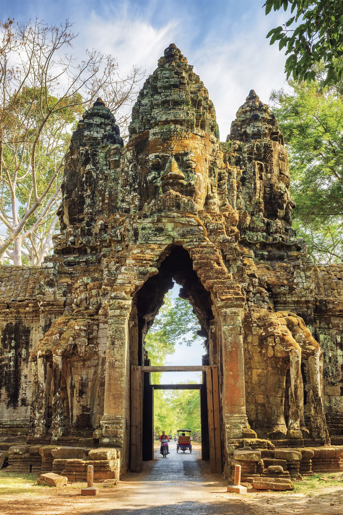 Von Phnom Penh aus führt der Weg weiter nach Siem Reap, dem Ausgangspunkt für die Erkundung von Angkor Wat und den umliegenden Tempeln. Neben Angkor Wat lohnt sich ein Besuch von Angkor Thom, der einstigen Hauptstadt des Khmer-Reichs. Besonders eindrucksvoll ist der Bayon-Tempel mit seinen riesigen in Stein gemeißelten Gesichtern. Ebenfalls beeindruckend ist Ta Prohm, ein Tempel, der fast vollständig von den Wurzeln riesiger Würgefeigen umschlungen ist – ein Bild, das an eine längst vergangene Zeit erinnert.