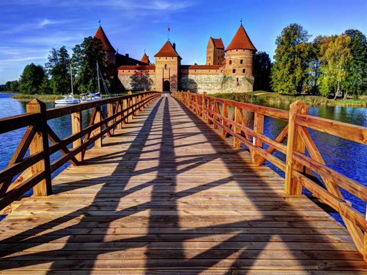 An der Memel entlang geht es ins Seengebiet um Trakai. Trutzig liegt die Wasserburg von Trakai mitten im See. Auf einer Bootsfahrt mit Blick auf die Burg bekommen wir einen Eindruck von der einstigen Pracht. In Vilnius können Sie nach einem gemeinsamen Abendessen im Hotel bei einem ersten Spaziergang die Kneipenszene erforschen. Busstrecke 330 km.