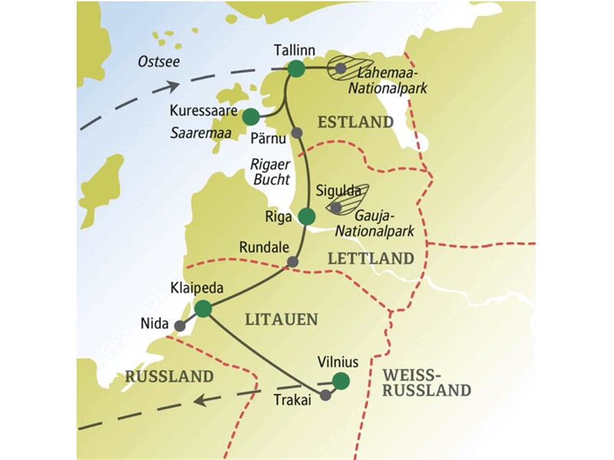 Heute heißt es Abschied nehmen von den baltischen Ländern. Im Laufe des Tages Transfer zum Flughafen von Vilnius und Rückflug.
