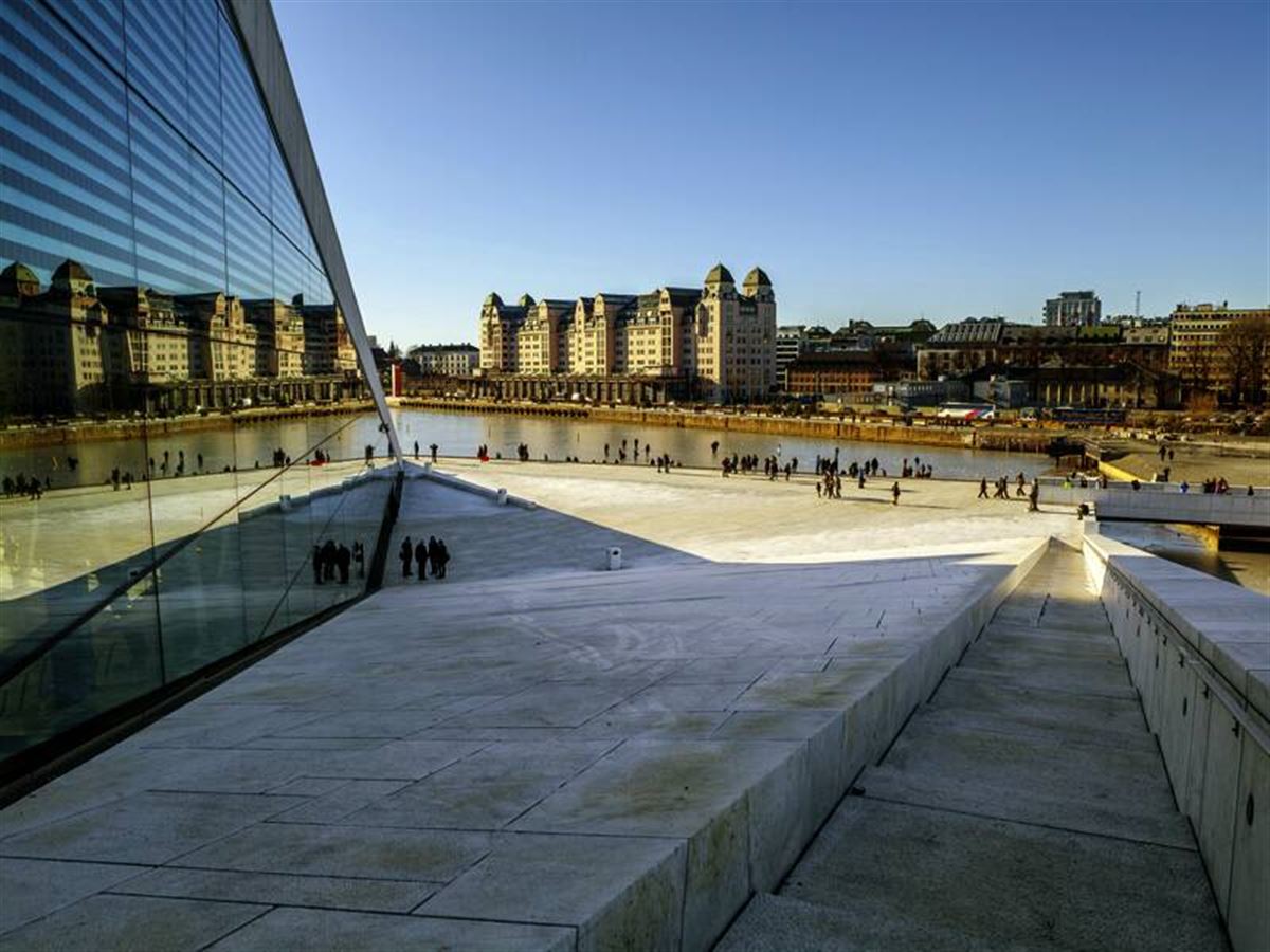 Stahl, Stein und Glas gewordene Visionen herausragender Architekten: Eisschollengleich schiebt sich die Oper zum Meer. Wir steigen ihr aufs Dach und genießen die Weitsicht. Nebenan erwartet uns das Munch-Museum, mit Edvard Munchs überraschenden Monumentalwerken und seinem berühmten "Schrei". Noch auf die Aussichtsterrasse, dann macht jeder, was er will. Die nahe Deichmanske-Bibliothek besuchen? Oder mal Rentier probieren? Ihre Reiseleiterin versorgt Sie mit Tipps.