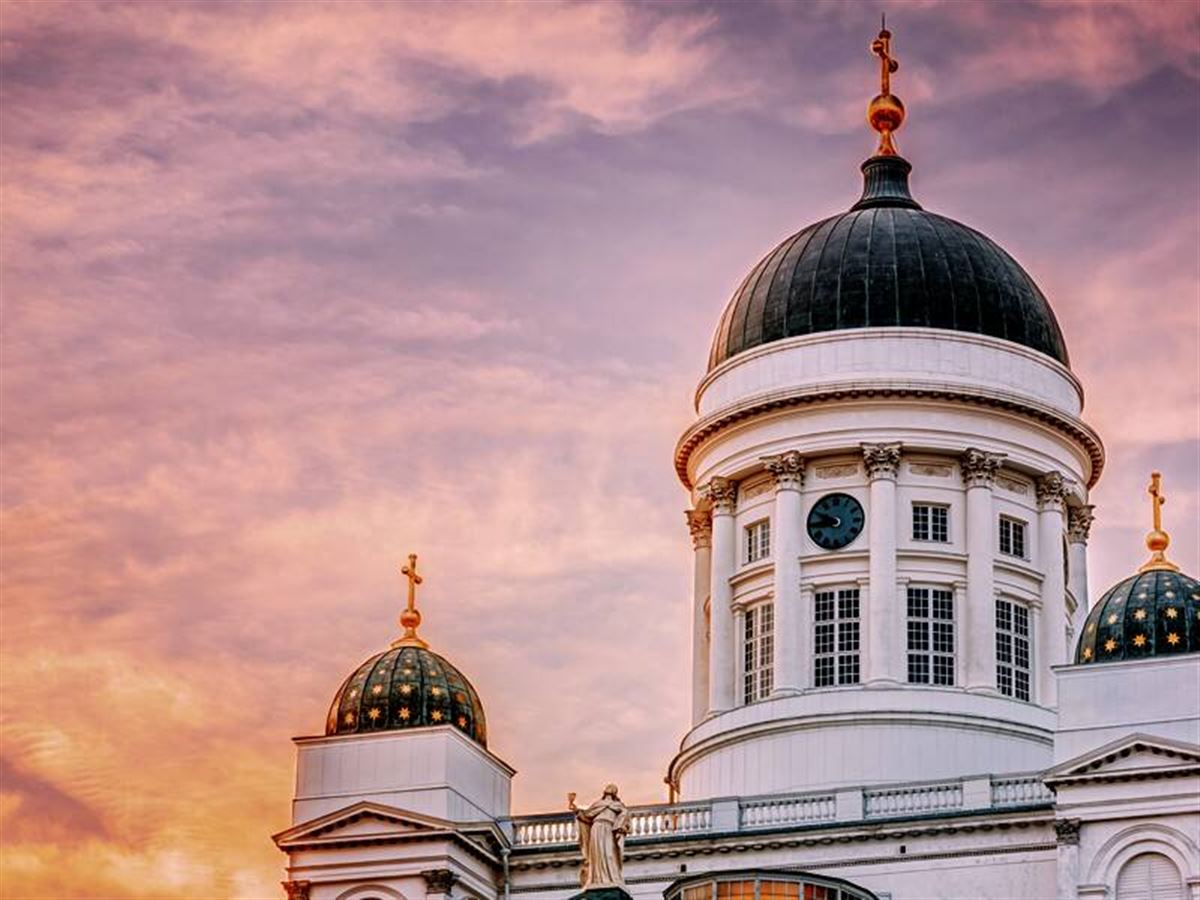 Bahnanreise 1. Klasse zum Flughafen und im Laufe des Tages Flug in die Ostseemetropole Helsinki. Der Transfer zum Hotel erfolgt in Eigenregie. Praktisch: Es liegt unmittelbar neben dem Hauptbahnhof mit bester Anbindung an den Flughafen. Um 17.30 Uhr begrüßt Ihre Studiosus-Reiseleiterin alle Anwesenden zu einem Mini-Stadtrundgang in den maximal angesagten Design-Distrikt. Begegnen Sie dabei dem für Finnen typischen Understatement, das sich in funktionalen und schlichten Produkten aus Glas und Porzellan widerspiegelt. Zurück im Hotel freuen wir uns auf das Welcome-Dinner.