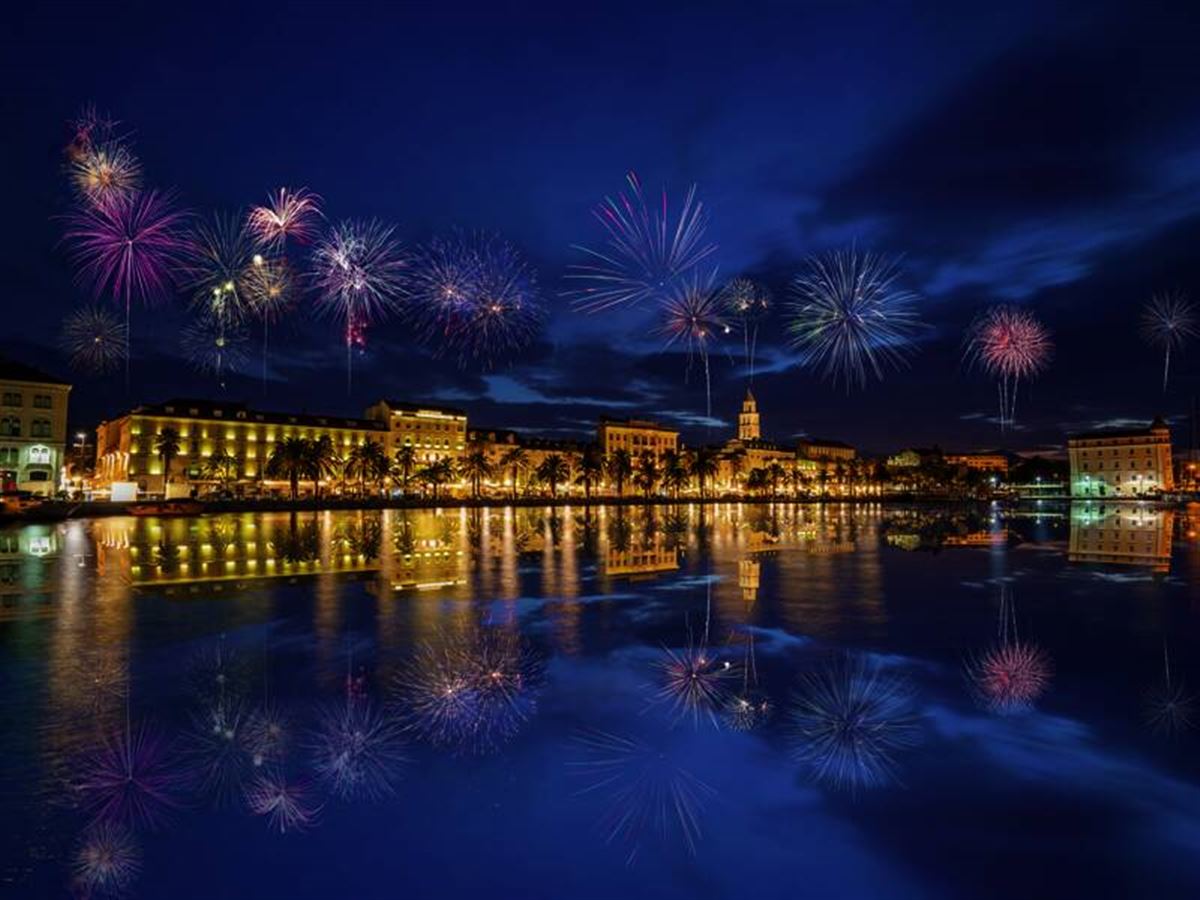 Umhüllt von römischen Mauern geht in den Gassen der Altstadt von Split die Post ab: angesagte Läden, eine bunte Mischung von Menschen, Cafés und Bars - das junge Kroatien, wie es leibt und lebt. Wir stürzen uns hinein und machen auch einen Ausflug in die "Unterwelt" des riesigen Diokletian-Palastes (UNESCO-Welterbe) zu Mauer- und Gebäuderesten der Antike. Während wir am Hafen den Fähren nachblicken, werden auf der Promenade bereits kleine Bühnen aufgebaut. Es bleibt Zeit für eigene Unternehmungen. Bummeln Sie in der Altstadt durch die Galerien und Boutiquen oder spazieren Sie an der Uferpromenade entlang! Unterwegs: Strandbuchten, spielende Kinder, Jogger und so manche Bar zum Ausruhen. Unser Silvester-Dinner erwartet uns dann im Restaurant Bajamonti in der Altstadt von Split, und wir stoßen auf das neue Jahr an. Lust auf me(e)hr? Dann ab auf die Uferpromenade Riva! Hier können Sie sich von der Feierfreude der Kroaten überzeugen: Unter den Palmen begrüßen sie tanzend und lachend das neue Jahr.
