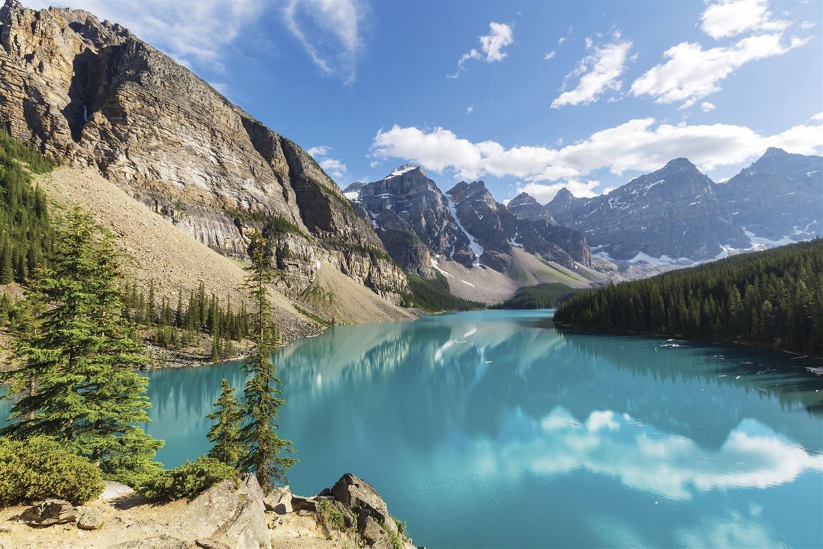 Schon von weitem sehen wir bei gutem Wetter die schneebedeckten Bergriesen der Rocky Mountains. Nach kurzer Fahrt erreichen wir Banff, inmitten der Bergkette der Rocky Mountains, eine der schönsten Naturlandschaften Nordamerikas. Hier leben Elche, Schwarzbären, Grizzlies, Wapitis und Wölfe schon seit über hundert Jahren geschützt und deshalb ist die Wahrscheinlichkeit sehr groß, die Wildtiere Kanadas beobachten zu können. Der Lake Louise liegt mit seinem riesigen Schlosshotel so malerisch vor der Traumkulisse der Rocky Mountains, dass er als eines der schönsten Fotomotive der Welt gilt. Wir haben Zeit, uns auf einer Wanderung von der wilden Schönheit der Rockies überwältigen zu lassen. Schneebedeckte Gipfel, glasklare Flüsse und Seen, Wälder und malerische Wasserfälle bieten herrliche Landschaftsbilder (Gehzeit 4-5 Stunden/400 Höhenmeter).