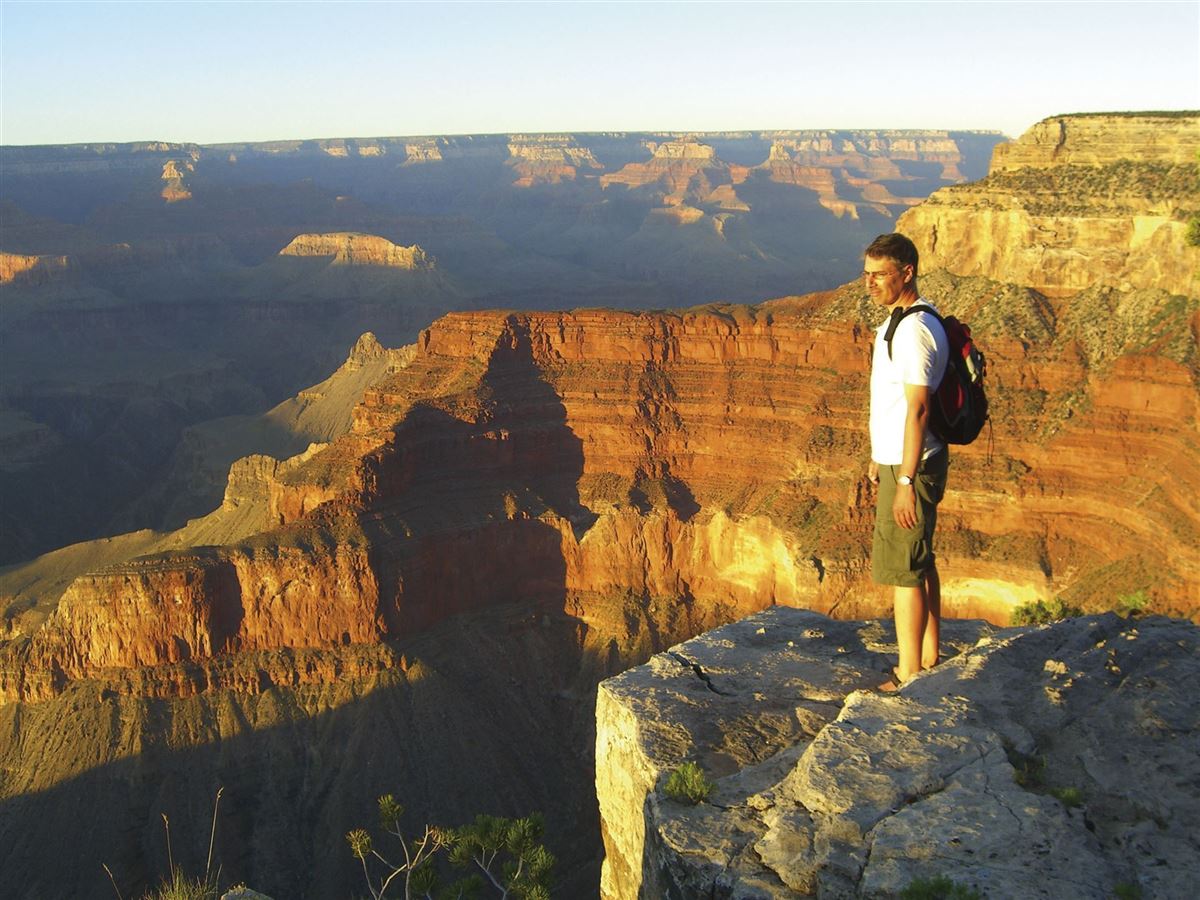 Wir haben den ganzen Tag Zeit, um ihn an diesem erstaunlichen Ort zu verbringen. Der Grand Canyon gehört zum UNESCO-Weltnaturerbe. Obwohl er von sehr vielen Touristen besucht wird, findet man nur wenige auf den Wanderwegen. Sie können absteigen bis zum Plateau Point oder den West Rand entlang wandern und von dort die unglaublichen Ausblicke genießen. Es bleibt genug Zeit für einen weiteren, unvergesslichen Sonnenuntergang. (Entsprechend den Vorschriften des Parks dürfen unsere Reiseleiter innerhalb des Grand Canyon NP keine geführten Wanderungen anbieten.) Kaibab Ridge: 3-4 Std, ca. 5 km, Höhenunterschied: +/- 300m Plateau Point: 8-12 Std, ca. 20 km, Höhenunterschied: +/-1150m Wanderung entlang des West Rim: ca. 4 Std, ca. 13 km, Höhenunterschied: +/-50m
