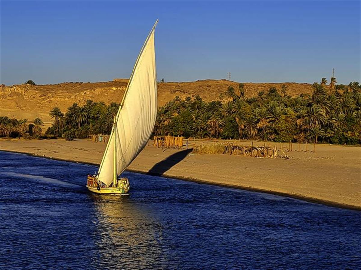 Ein letzter Stopp vor Assuan am Kalabscha-Tempel, der durch deutsche Archäologen gerettet wurde. Nach der Ausschiffung ist vor der Einschiffung! Wir wechseln das Schiff und gehen an Bord der MS Medea, auf der wir drei Nächte verbringen. Nachmittags segeln wir auf einem traditionellen Segelboot, einer Feluke, flankiert von Assuans Skyline.